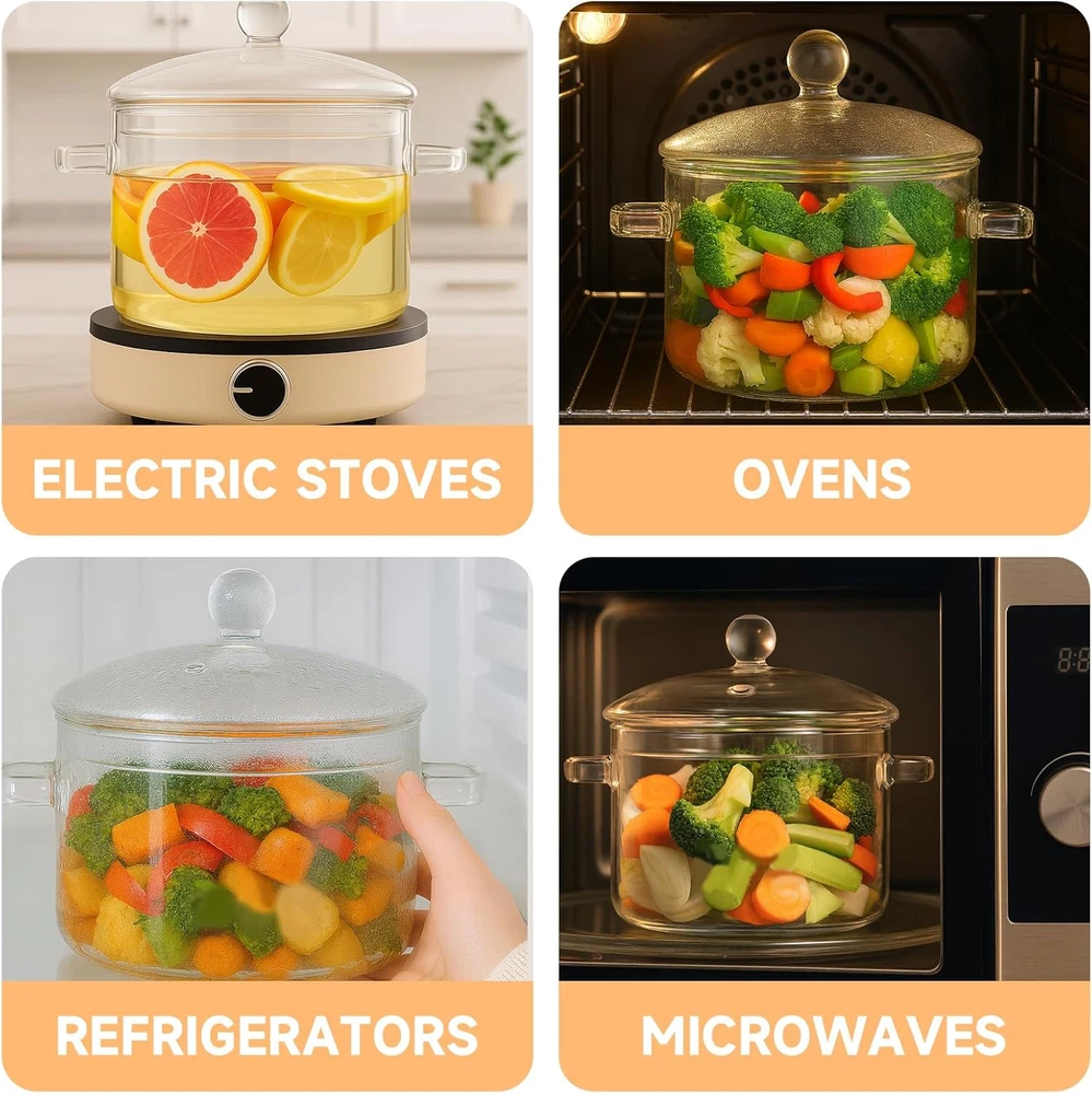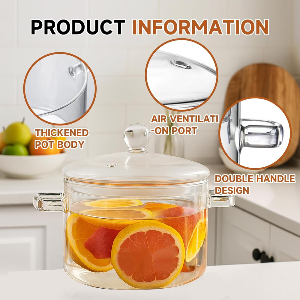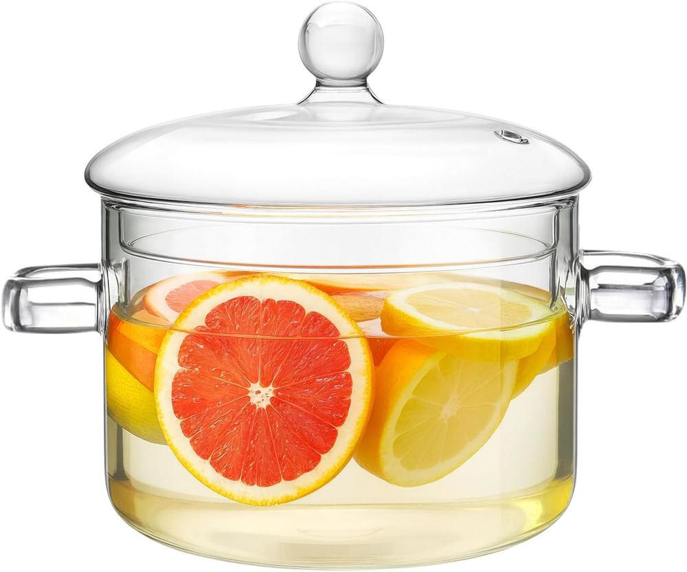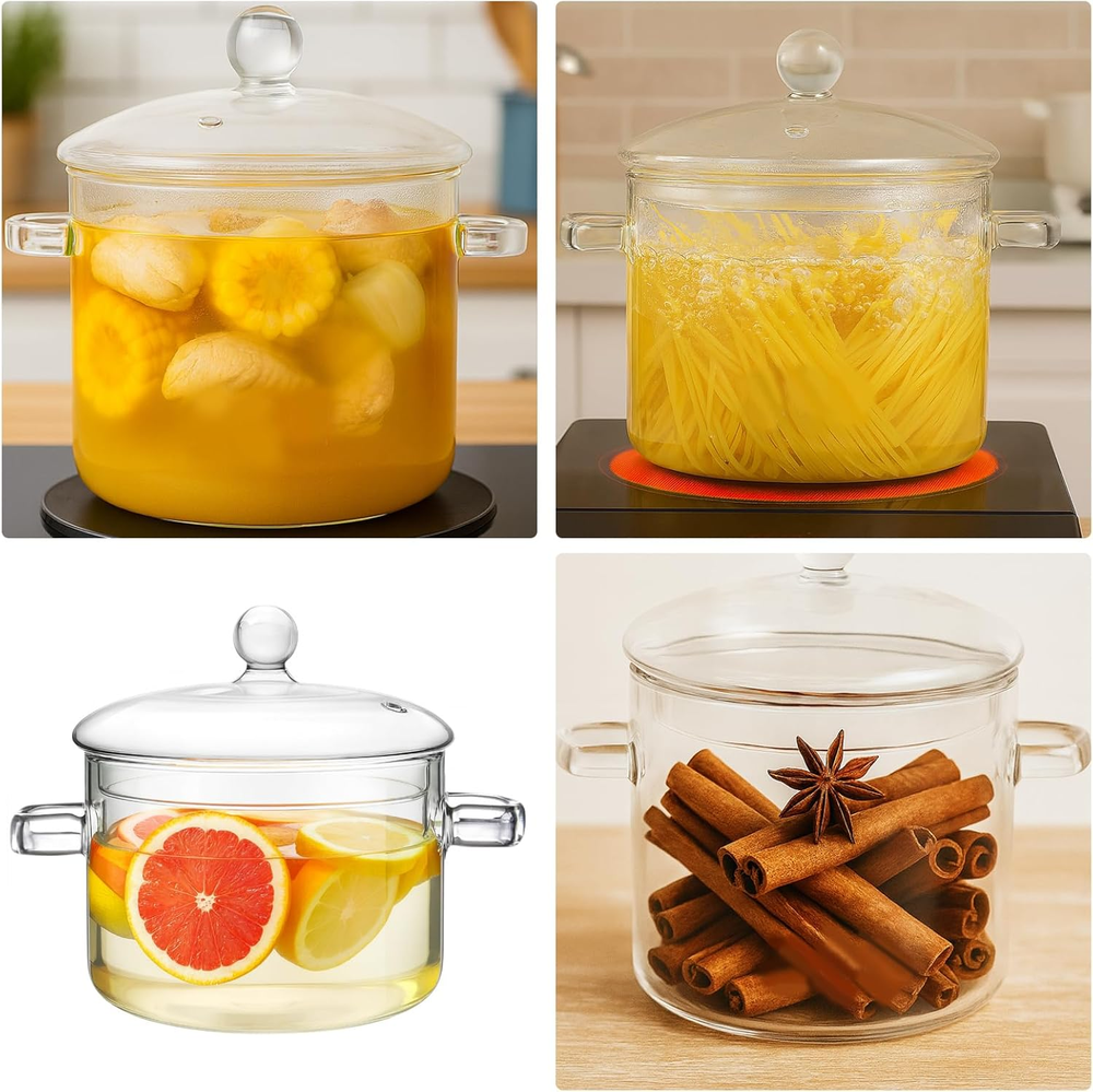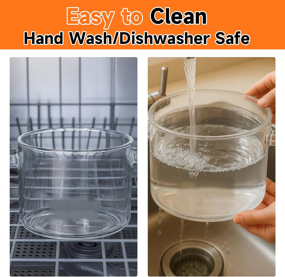 Glass Cooking Pot 1.9L/64Oz Heat-Resistant Borosilicate Glass Saucepan Cover Set Versatile 1.9L Capacity & Transparent Design: Master your kitchen with this perfectly sized 1.9L (64 Oz) glass pot. Its clear design lets you monitor your pasta, soups, and stews without losing heat by lifting the lid. Ideal for boiling, simmering, brewing tea, and preparing delicate with perfect visibility Borosilicate Glass Construction: The pot is crafted from premium, high borosilicate glass. The 4mm thickened walls provide enhanced resistance to thermal shock compared to thinner glass, offering you peace of mind during everyday cooking Easy Cleanup: Commit to a healthier kitchen. This pot is completely free from lead, BPA, and other harmful chemicals. The non-porous, smooth glass surface prevents odor and stain absorption and is effortlessly dishwasher safe for quick and simple cleaning Guide to Use:Do not place a hot pot directly into cold water, or transfer it directly from a refrigerator/freezer to a hot stovetop. For best results, begin by preheating with warm water on low heat, and allowing the pot to cool down naturally after use.,Recommended for use on ceramic stoves Shop with Confidence: We pack your glass pot with extreme care to ensure it arrives safely. However, in the rare event that you receive a damaged or incomplete product, Please via Messaging with photos of the issue, and we will promptly provide a satisfactory resolution, no questions asked Product description Item model number BLG-1900 Product Dimensions 6.3"D x 6.3"W x 5.5"H Capacity 64 Fluid Ounces Number of Packs 1 Color Transparent Material Borosilicate Glass Item Weight 1.81 pounds Is Oven Safe No Finish Type Uncoated Is Suitable For Stovetop Yes Coating Description Uncoated Size 2 Quarts Complimentary Shipping and Easy Returns Need to return something? Enjoy our 30-day hassle-free return policy! Take advantage of free shipping across all 48 contiguous states! Your order will be dispatched within 1-2 business days once payment is confirmed. Your Opinion Matters! Your happiness is our main goal! We welcome your feedback! If you encounter any problems, reach out to us right away, and we’ll be here to help. Explore the Extraordinary! Our collection showcases fascinating products that are sure to capture your attention. What surprises await you? Delve in and discover unique items that enrich your daily life. Don't miss the amazing things we have in store for you!