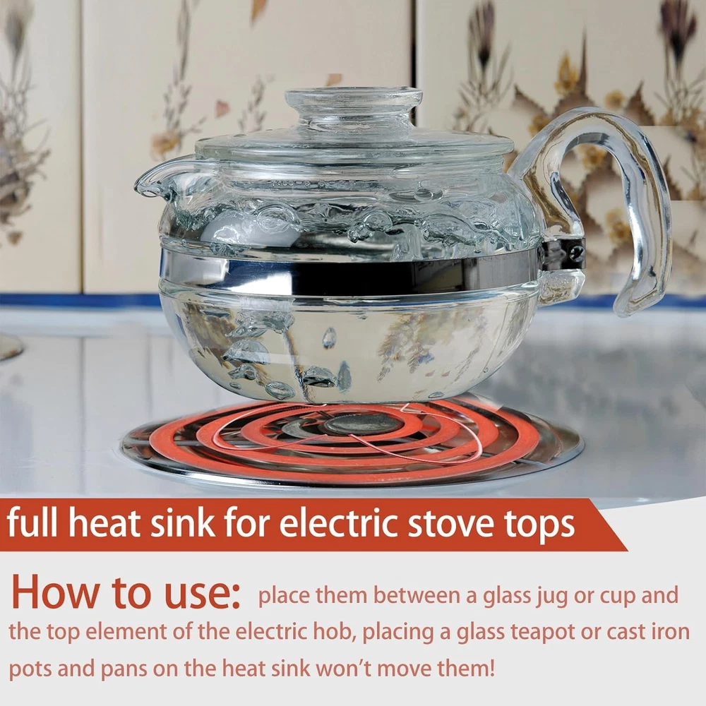 Free eBay listing template designed by dewiso.com Glass Cooktop Heat Diffuser for Electric Stove, Full Heat Sink Protects Glass Cookware, Pack of 4 FREE AND FAST SHIPPING! About this item Product: full heat sink for electric stove tops, brand new, pack of 4, each diffuser tripod measures approximately 3-3/4 inches X 3-3/4 inches Function of the heat sink: disperses the heat so it doesn't break the glass. and lifts anything placed on it. It is an essential accessory for all electric stove tops How to use: place them between a glass jug or cup and the top element of the electric hob, placing a glass teapot or cast iron pots and pans on the heat sink won't move them! Excellent performance: our heat sinks are made of high quality galvanized steel material for durability and reliable performance Cleaning method: hand wash with warm soapy water, rinse and dry thoroughly. If it is a little rusty, you can dip it into vinegar, wash off the rust with a toothbrush, re-spray it with oil and burn it off so that it will be re-coated with a layer of protective oil, which will prolong its service life Product We offer a 30-Day Return Policy on items which you are not completely satisfied with. You have the option for a full-refund or an exchange of the item. No returns are available on items shipped outside of the US . Shipping We offer Free Shipping to the US and ship within 2 business days of payment, usually sooner. We use UPS express shipping. That's why your products are usually delivered within 3 days . Contact We try our very best to make sure every customer is completely satisfied. If there's a problem , message us! We're happy to help. 24/7 live chat available.