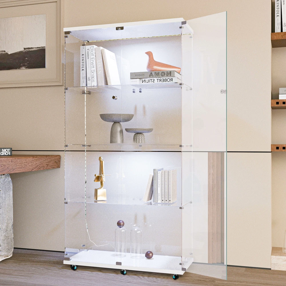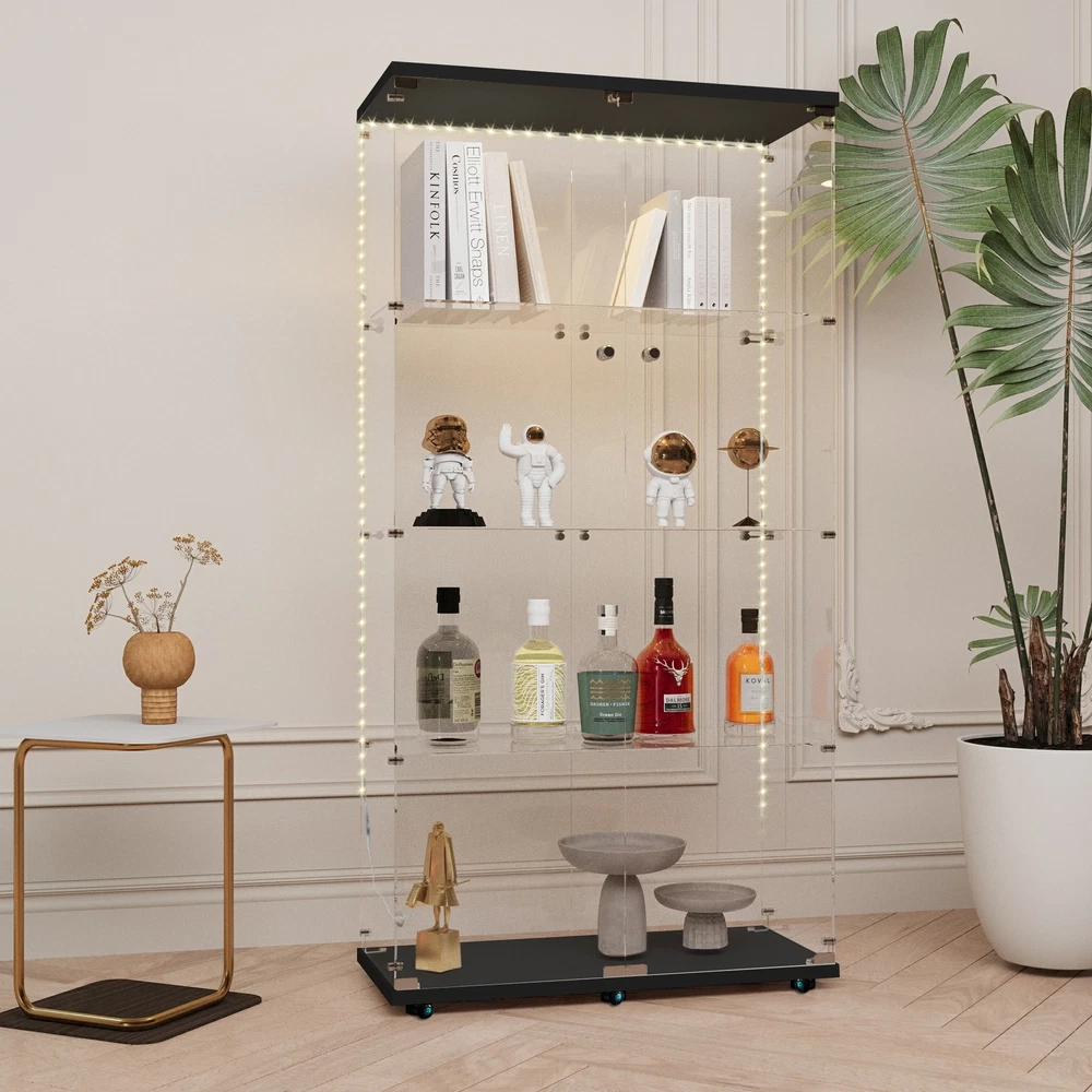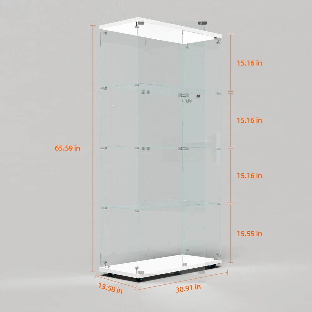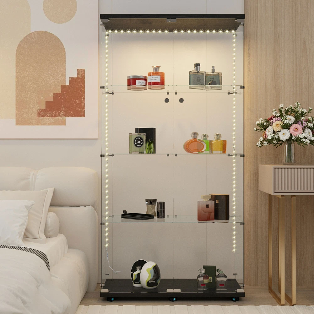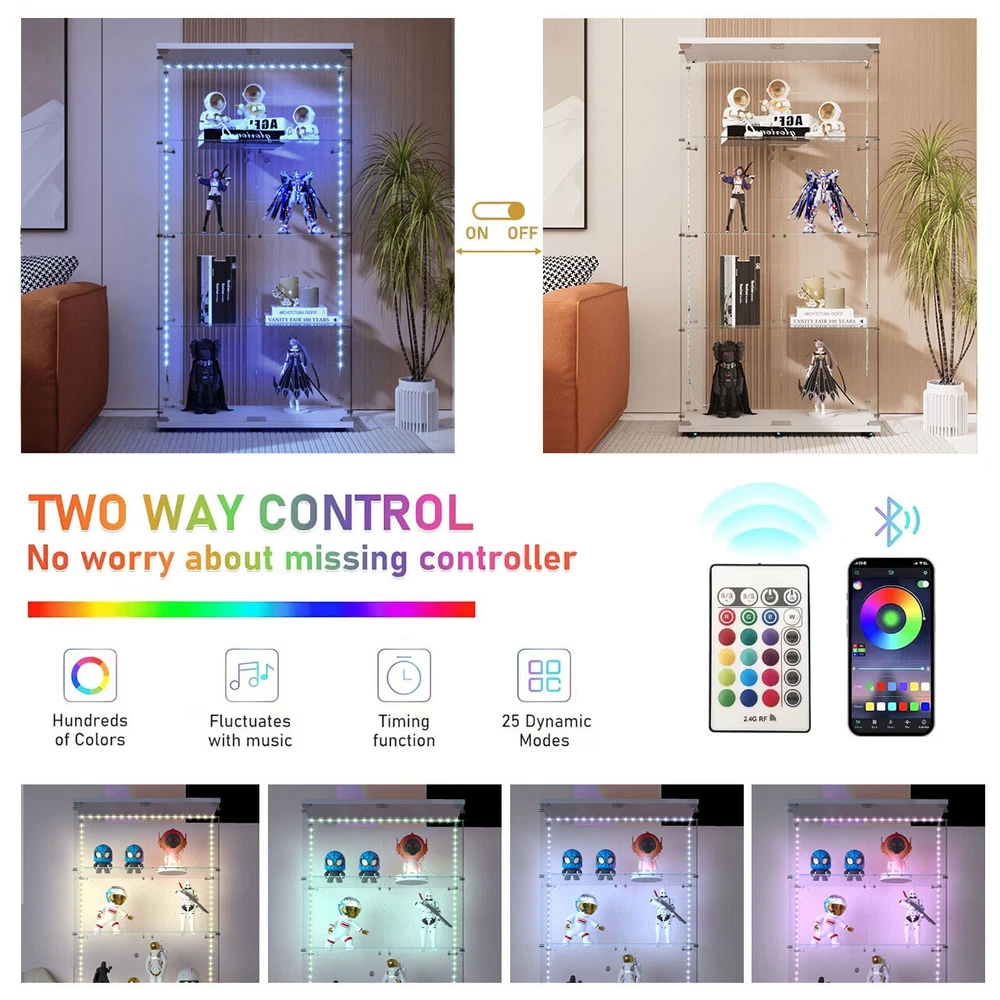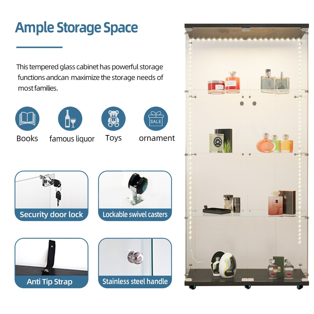 Features: 【100% Brand New Quality】 【Glass Display Case with LED Strip 】 : Glass display case with 2 LED strips. Lighting without wiring, 13 colors can be selected by remote control and 4 colors can be preset manually: warm white, red, green and blue. Gradient and smooth modes can also be set to show the beauty of your collection by adjusting the color of the light. 【Sufficient Capacity &Durability】The curio cabinet measures 64.6“(H) x 31.7”(W) x 14.3"(D), each piece of tempered glass is 5mm thick and made of high-strength tempered glass and solid wood panels, which can effectively reduce glass breakage. The cabinet has four tiers with a maximum weight capacity of 17.6 lbs. per tier and 44 lbs. per tier. 【EASY TO ASSEMBLE】 This glass cabinet has been optimized and upgraded from the classic style, and comes with an accessory kit and instructions for easier assembly. Anti-tip device can better secure the glass display case. You can easily store your items in this beautiful glass display cabinet to keep it neat and safe. 【 Concise & Beautiful Design 】 The transparent frameless design of the bright glass cabinet makes you see your favorite antiques, books, and toys, and is suitable for any family style. The metal handle will make it easier for you to open the wine cabinet. It perfectly blends with your elegant home decoration and adds highlights to your room 【 Wide Use 】 Curio cabinets with glass doors provide sufficient capacity to display action figures, wine, toys, art, etc. It can be used as a display cabinet in the living room, a wine cabinet in the kitchen, a bookshelf in the study, or a hand-made display rack in the collection room. We recommend securely fixing the glass cabinet onto the wall to ensure the safety of you and your family 【Good After-sales Service】 If the damage occurred in transit or the product is broken, please take a photo and contact us, we will solve all the problems for you. Have a nice life! Note: Product colors may vary slightly depending on the phone screen. It is just a very small difference. Specification: G lass Display Cabinet with LED Lights and Lock, 2 Door Curio Cabinets, Tempered Glass Collection Display Showcase for Bedroom, Living Room Package: 1* Glass Display Cabinet 1* Instruction Books 🥇 Please check if your address is correct, we cannot change the address once sent. ●Delivery details 🚚 We have 3 warehouses in the United States: LA warehouse, NY warehouse, CA warehouse; when the warehouse near you is out of stock, we will use the warehouse far away from you to deliver the goods. 🚚Shipping from the United States, door-to-door delivery by UPS or FedEx.1-3 business days with tracking number provided. 3-12 days delivery. It depends on logistics and shipping. Sometimes there may be delays. 🚚We cannot ship to PO Box/Hawaii/Alaska/Puerto Rico/APO ●Return Policy ❤️ 1. We generally do not accept returns! ❤️ 2. If there is a problem with the product quality or it is damaged during transportation, you can contact us by email. I can replace it with a new one for you free of charge. Please do not make a return request lightly. Thanks. ❤️ 3. You can easily contact us by email and we will reply you within 24 hours, except holidays. ❤️ 4. We are more than happy to answer any questions you may have, please contact us via email. ●About Fundiy 👍 1. We hope to be a 100% satisfied seller. 👍 2. We provide high-quality after-sales service, you can contact me at any time. 👍 3. We have extremely fast response to deal with your problems. For example, if the product has quality problems or the product is damaged during transportation, please contact us 👍 4. Please give me ⭐⭐⭐⭐⭐feedback! Thank you!