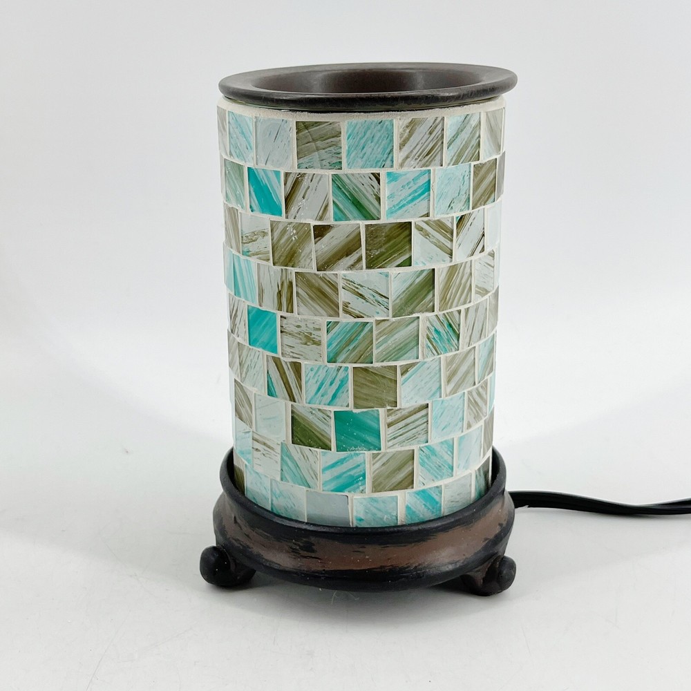 Candle Warmers Etc Glass Illumination Fragrance Warmer Sea Glass Teal Green Gray 7" tall