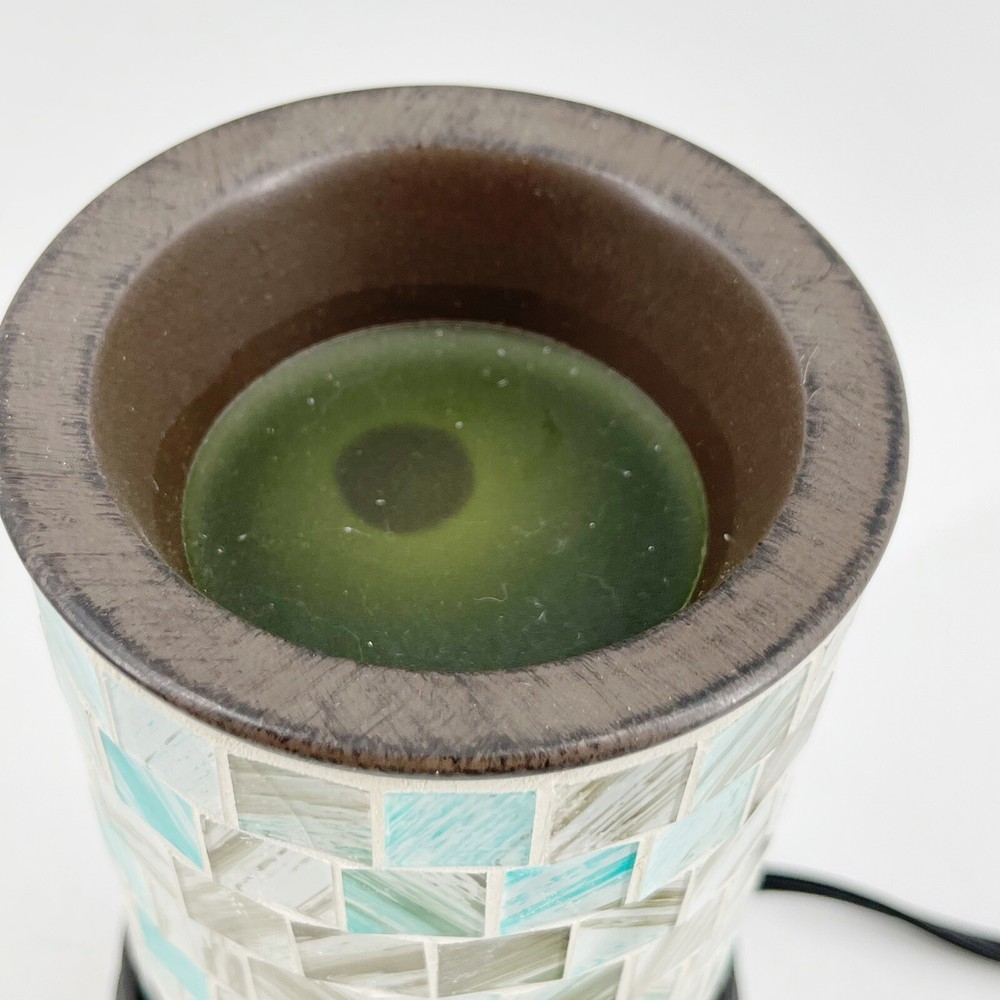 1. This warmer is absolutely gorgeous—the teal, green, and gray sea glass colors give off such a calming vibe. It warms my wax melts perfectly, filling my room with lovely fragrance. The height is just right, and it looks so elegant lit up. A must-have for cozy spaces!