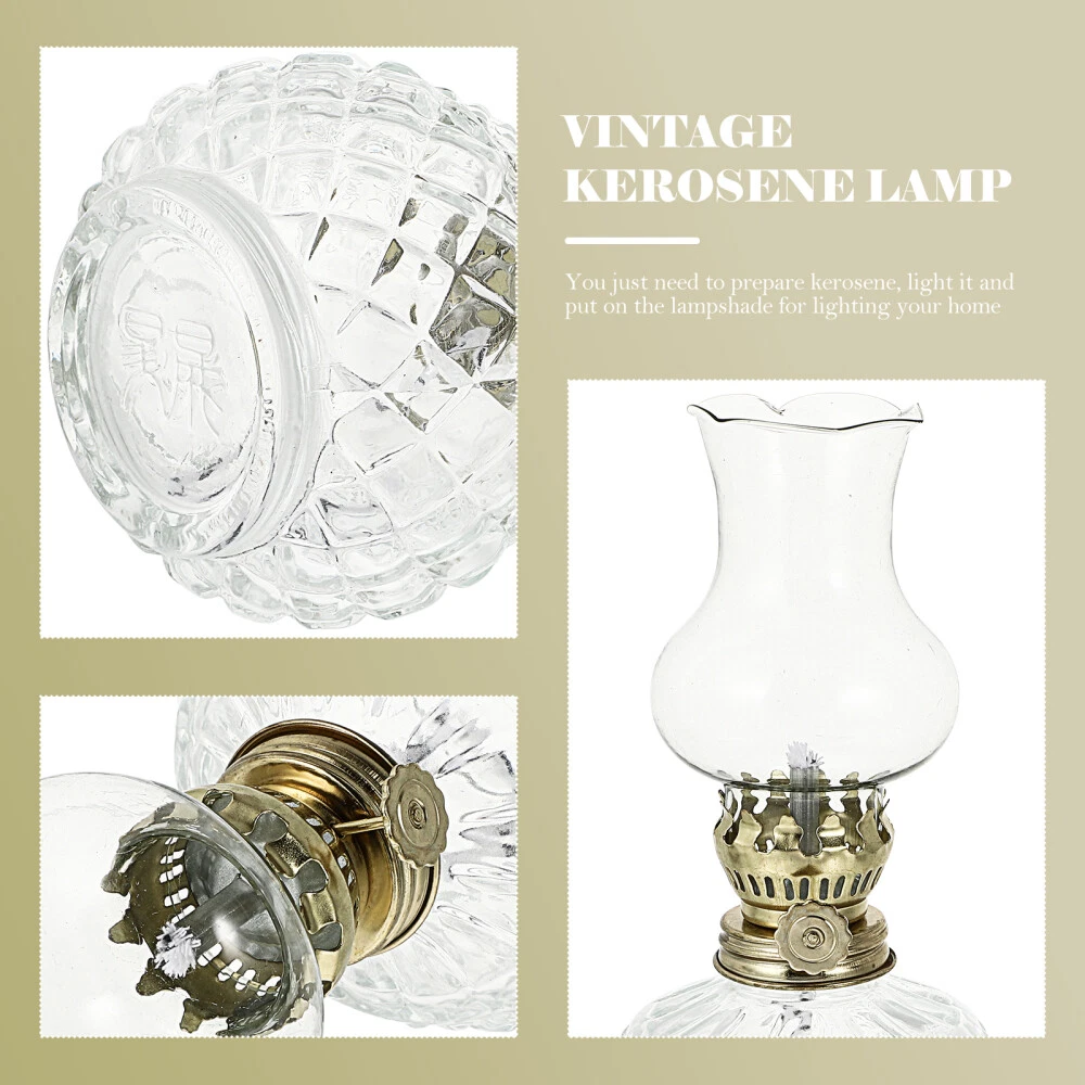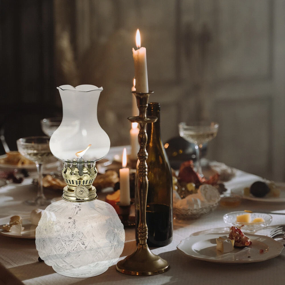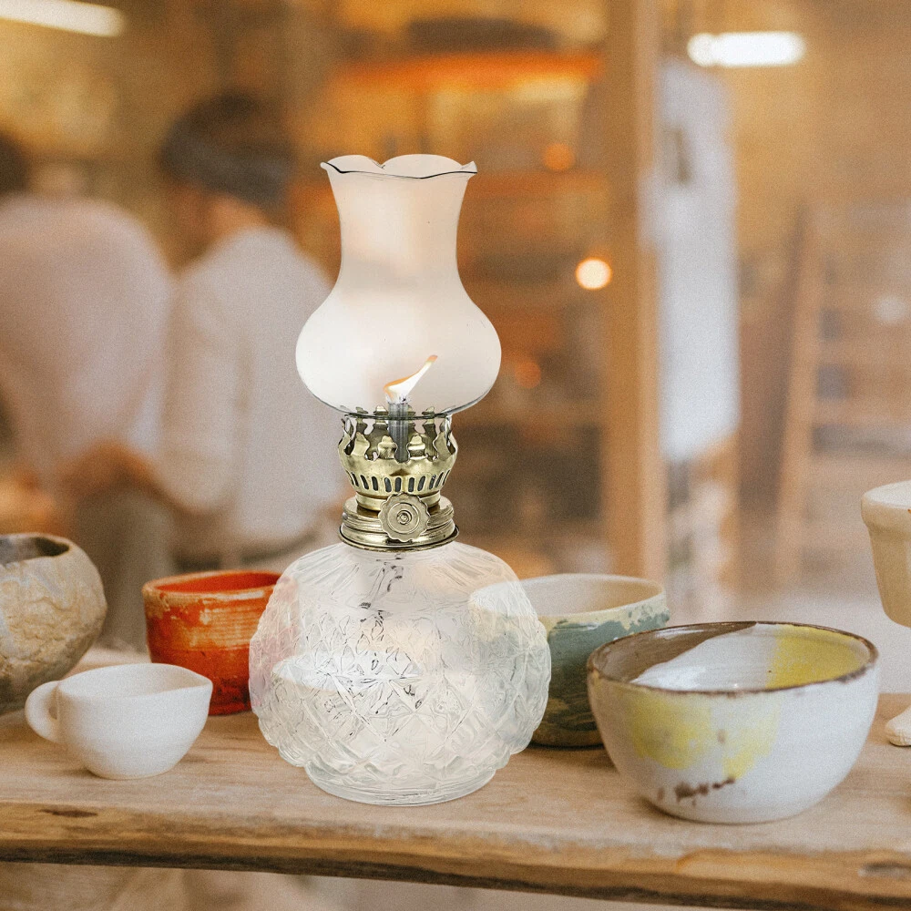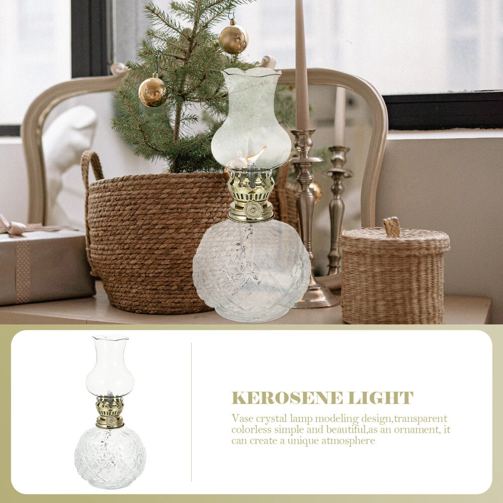 Glass Kerosene Lamp Retro Vintage Decor Lighter Live Rechargeable Bulbs
