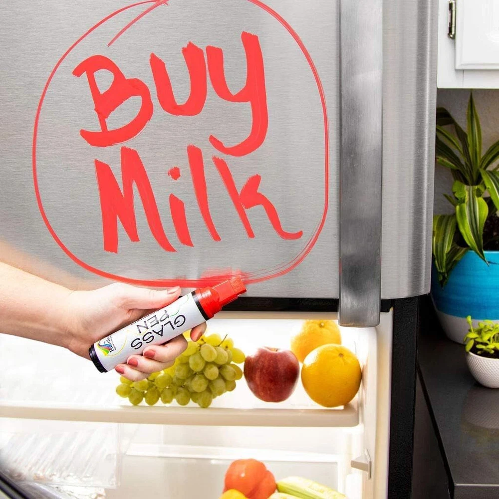 PAINTERS MARKERS When it’s time to brighten up your windows or write messages on mirrors, use the Glass Pen to add a rainbow of eye-catching colors to your stunning designs! These pens feature a reversible nib to be long-lasting and work on a wide variety of surfaces to be suitable for every occasion and any room. Simply pick up a Glass Pen and pump the tip to get the ink flowing so you can draw, color, and decorate to your heart’s content. MULTIPLE SURFACES These pens were specially designed to glide across glass surfaces to create vibrant designs and calligraphy, but did you know they can be used for so much more? Use the Glass Pen to decorate wine glasses at a party, so everyone knows which glass is theirs or hand them to your kids and let them draw on your windows for some fun, structured playtime! You can also use these pens on kitchen, bedroom, and bathroom windows and mirrors, glass signs and doors, whiteboards, and car windows. FOR EVERY OCCASION Bring life to every party and dazzle your guests with beautiful swirling designs and messages created using the Glass Pen. Use them to decorate signs for bridal parties, weddings and anniversaries, write happy birthday or graduation messages on car windows, draw mandalas on bathroom windows, or paint snowmen, ornaments, and mistletoe on windows during the holidays. RICH PIGMENTS Available with a 5mm Narrow or 15mm Wide Jumbo nib, the Glass Pen can create flowing lines or bold paint strokes. Choose from one of our 10 popular colors: white, black, red, orange, yellow, green, blue, pink, violet, and brown. ADVANCED FORMULA The ink used is carefully created using a water-based formula that is resistant to light mist and rain while being easily washable with a damp cloth. Non-toxic and safe to use in enclosed spaces and near children, the Glass Pen is environmentally friendly and allows you to decorate every inch of glass and window space with fun, playful designs! WINDOW PAINT MARKERS: Write, draw, and decorate any glass surface with a rainbow of long-lasting colors MULTIPLE SURFACES: Arts and craft pens for glasses, mirrors, window panes, marker boards and more (Note: Surfaces must be clean & dry for Glass Pen to write smoothly) FOR EVERY OCCASION: Indoors and outdoor pens for birthdays, graduation, anniversaries, and weddings ADVANCED FORMULA: Non-toxic, water-based ink that is safe to use around children and enclosed places RAIN RESISTANT & WASHABLE - Durable enough to resist light rain showers but still be removable by wiping with a damp cloth. INSTRUCTIONS TO START- Active new pen on a scrap piece of paper. Rapidly press 30+ times to release the liquid inside. (Do Not pump tip while writing, this will cause excess ink to drip or leak.) TIPS COME OUT EASILY- Designed with easily reversible tips for flipping over or replacing, if the tip comes out do not worry, simply put it back in and keep writing. (replacement tips sold separately) CLEAN AND DRY SURFACE - Works best on clean, dry surfaces. For window glass, drinking or wine glasses, apply when the glass is dry & free of condensation for smooth writing and to prevent droplets.