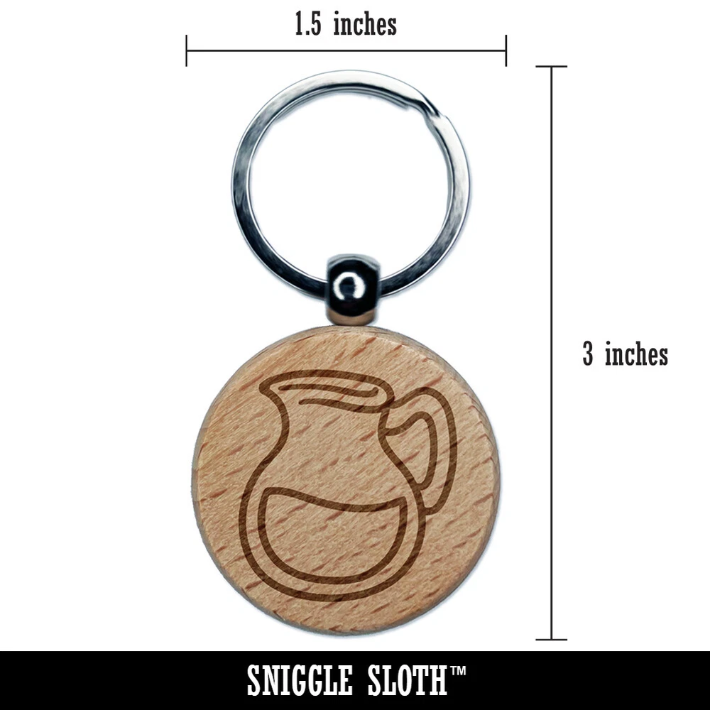 Glass Pitcher with Water Lemonade Engraved Wood Round Keychain Tag Charm
