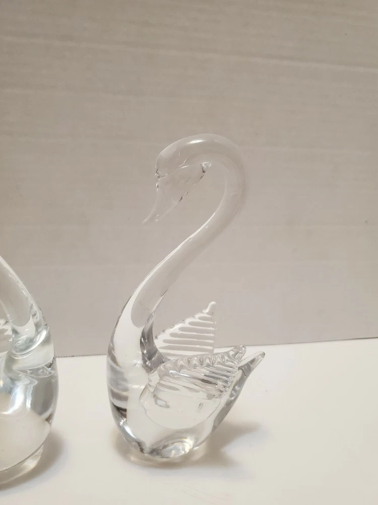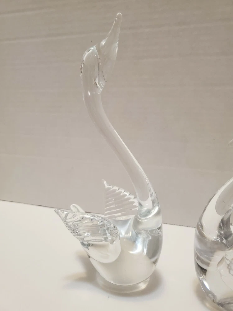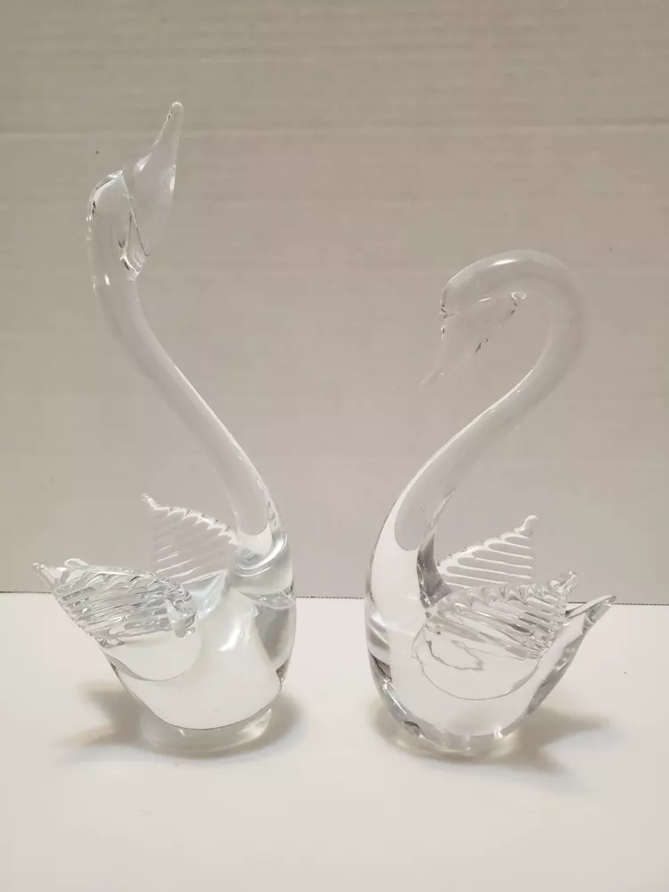 Glass Swan Figurines - Set of 2 - 9.5" tall & 7.5" tall. Please see photos for details and condition.