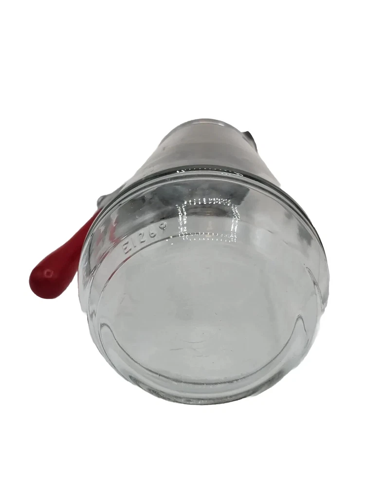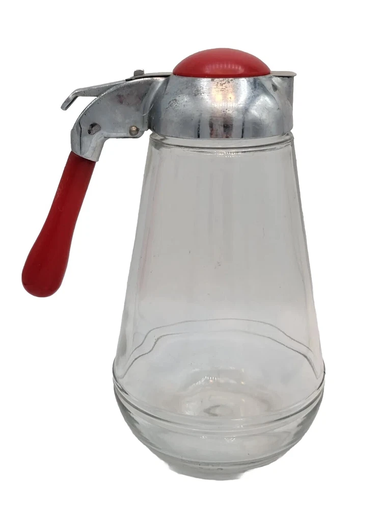 Vintage Glass Syrup Dispenser With Red Bakelite Handle And Top. Stamped E1269 * 6.5" H x 5.5" W x 3.5" D. * Vintage. * Glass syrup dispenser. * Red Bakelite handle & top. * Stamped E1269 into glass. * Screw off top. * Note: it does have some chips on glass at top which is covered by lid (as shown in photo). Does not interfere with use. See all photo's. NOTE: All shipments are packed with care for a safe arrival to you. I do my best to describe each item to the best of my ability. Please always see all photo's shown to see actual condition of the item being sold. Everything is sold "as is". Make sure to check out all my other items I have for sale in my store, Roxy's Relics. You can follow me to see what new items I add daily. Thank you for visiting my store. PAYMENT: Payment on ALL purchases (including offers made & accepted) must be paid within 8 hours. If not, the order will be cancelled & the price will go back to original price. My policy supersedes eBay policies on this. CONDITION: Please see all photo's for complete condition of item.
