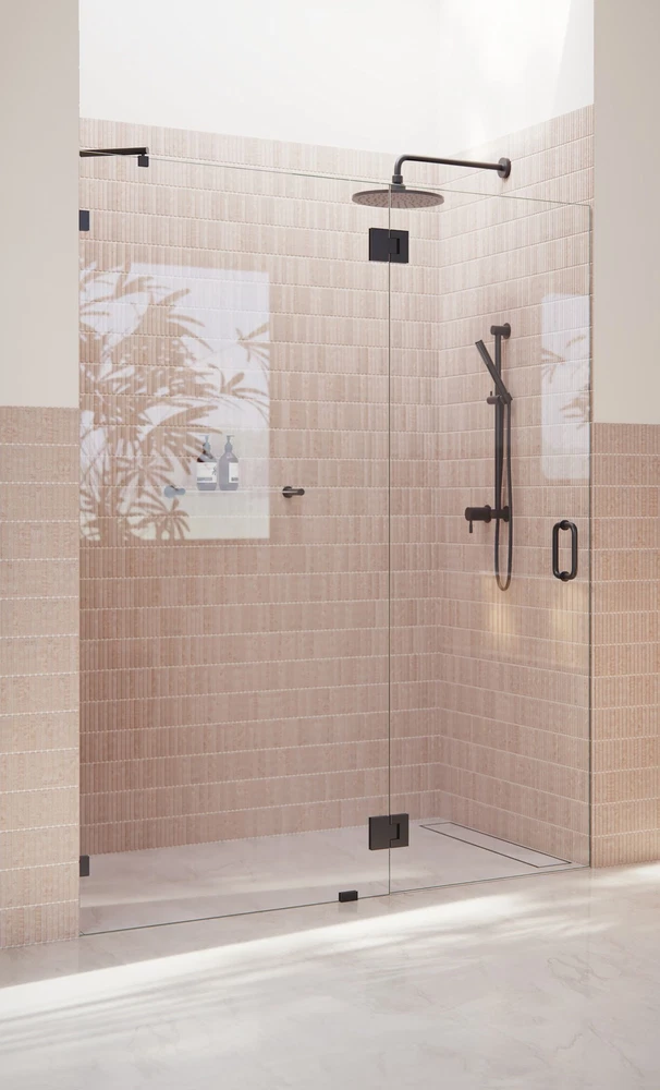 Glass Warehouse 78x60.5 Bronze Frameless Hinged Halo Shower Door