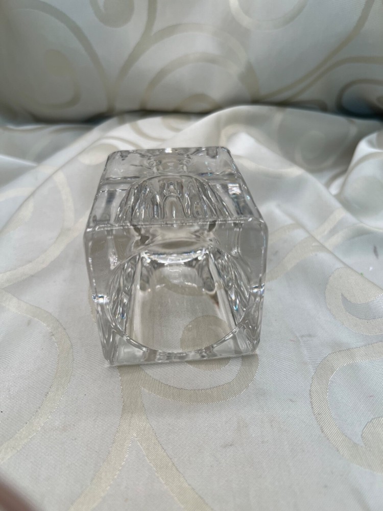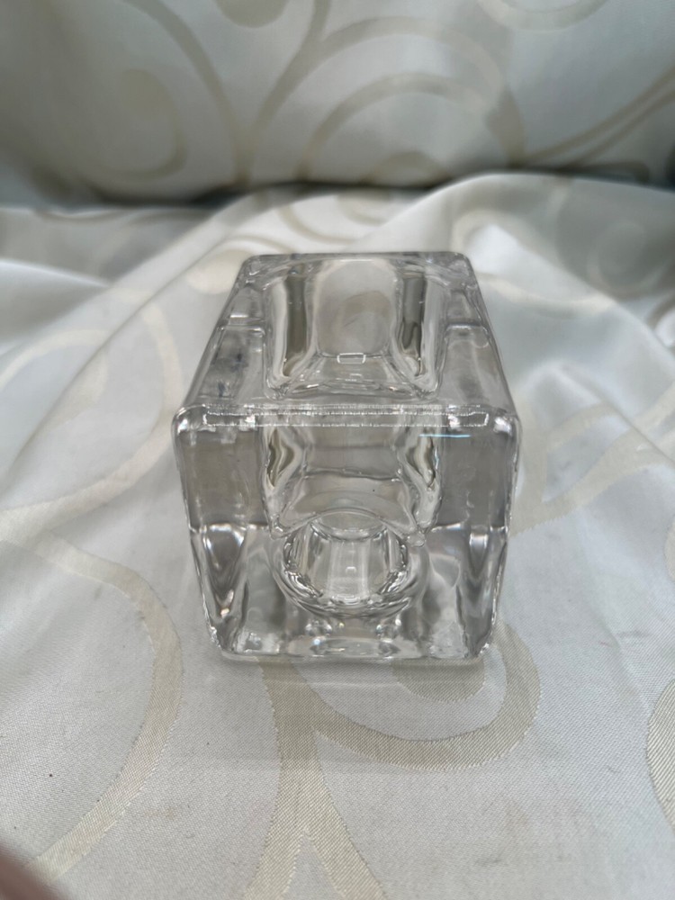 The glass cube taper or small pillar candleholder is a modern, clear glass candle holder with a smooth finish. It is designed to hold one candle and is suitable for all occasions. The cube shape adds a contemporary touch to any decor. Made from glass, this small candle holder is perfect for adding a stylish touch to your living space. You can put a taper candle in one end and flip it over and put a pillar candle in the other end.