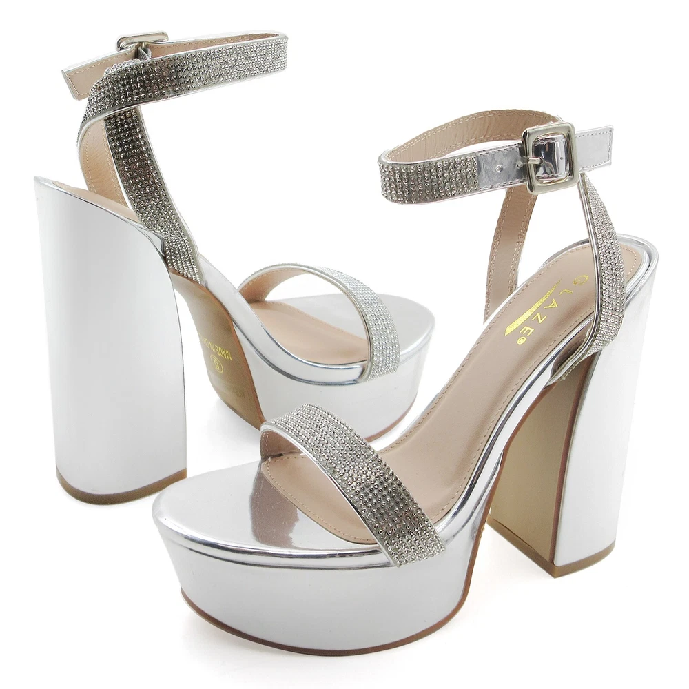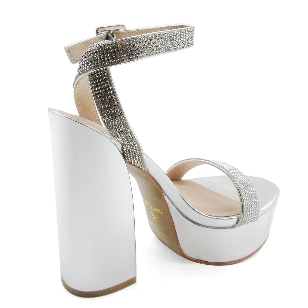 Description: Step into glamour with these stunning platform sandals in a luxurious metallic finish. The dazzling rhinestone-embellished straps add a touch of sparkle, making these shoes perfect for special occasions and evening events. Featuring a chunky 5.5-inch block heel balanced by a 2-inch platform, these sandals offer both height and stability. The ankle strap with golden buckle closure ensures a secure fit, while the padded footbed provides comfort for extended wear. The metallic finish extends to the platform and heel, creating a cohesive, eye-catching look. These statement shoes pair beautifully with formal dresses, evening gowns, or your favorite party attire. The combination of glitter and shine makes these platforms an ideal choice for proms, weddings, or any celebration where you want to make a lasting impression. Payment Information: We Accept PayPal We Accept Credit Card via PayPal Shipping Information: We provide Same Day FREE SHIPPING domestically within the U.S.A USPS Priority (2-3 business days) & USPS Priority International (14 days with tracking) We reserve the right to charge additional shipping fee for reship items due to wrong shipping address provided during checkout. All orders before 5PM EST will ship out same day!, Monday - Friday Ships Same Day with TRACKING! Refund & Return Policy: We offer a 30 day return policy on all items purchased from us. Please contact us within 30 days after receipt of the item for a return. Do not ship the item back to us without contacting us first. Return shipping is responsibility of buyer.