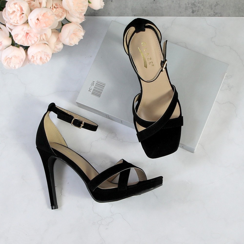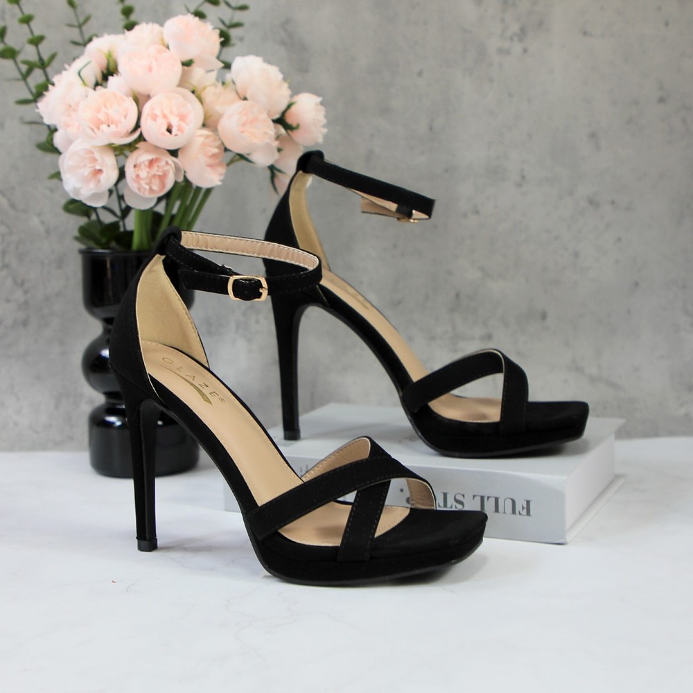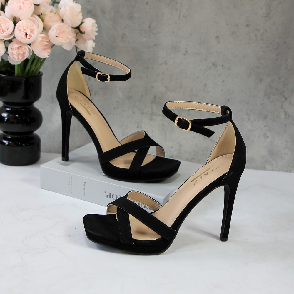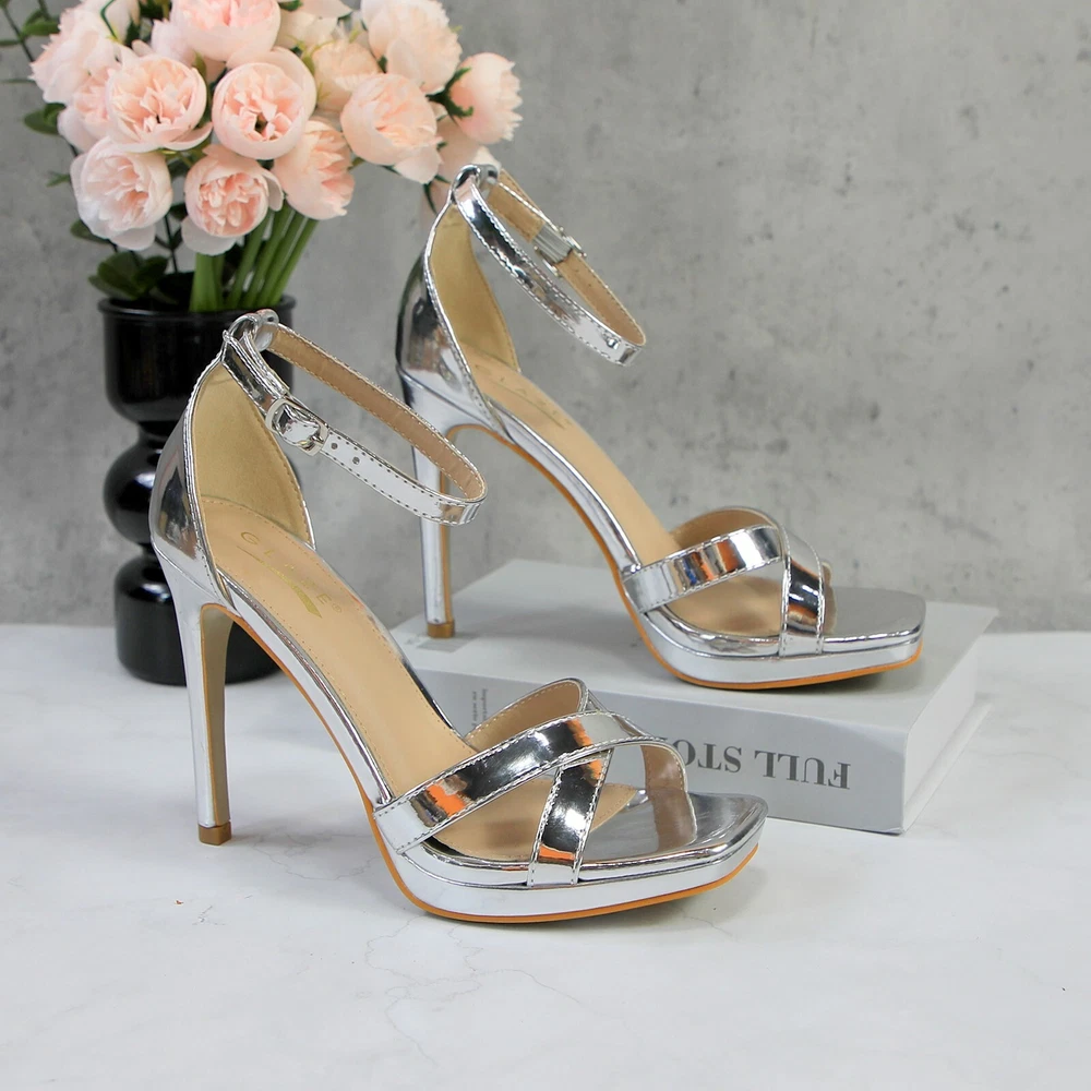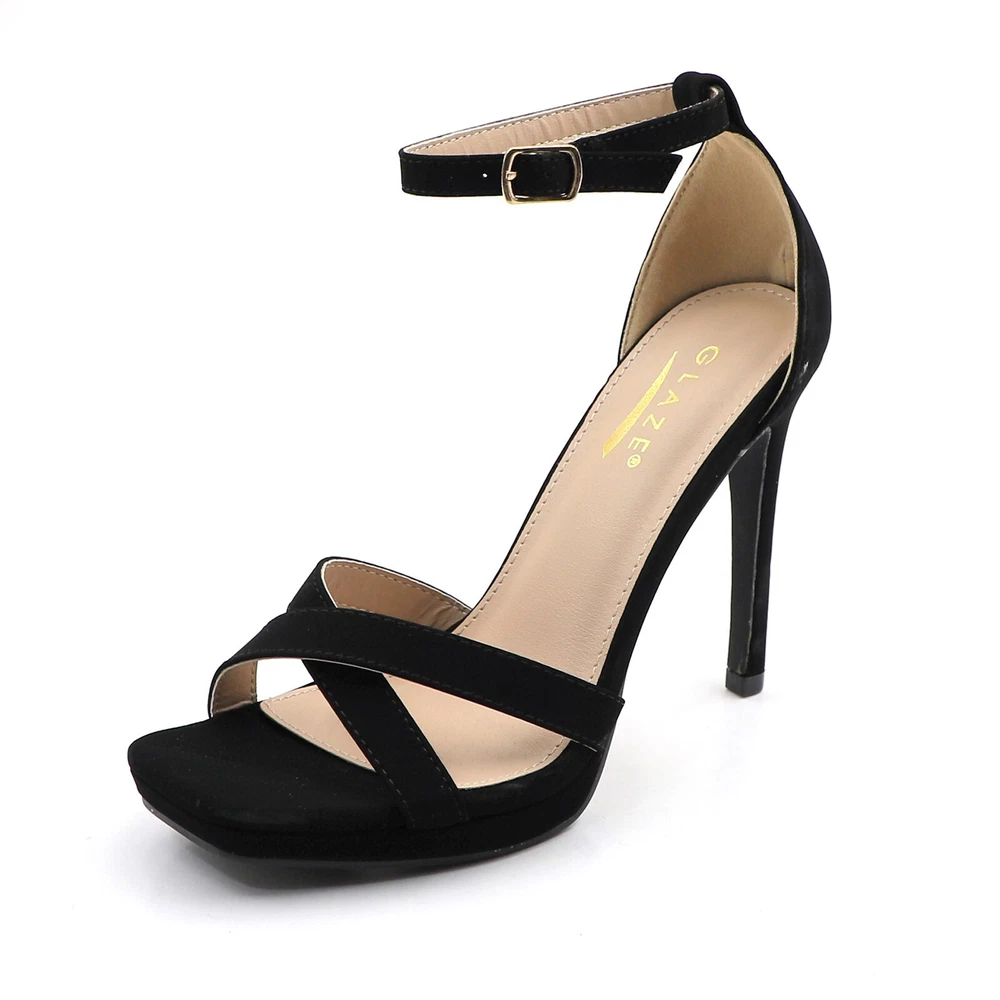 Glaze Womens 4 Inch Stiletto Sandals with Ankle Strap and Cross-Strap Platform