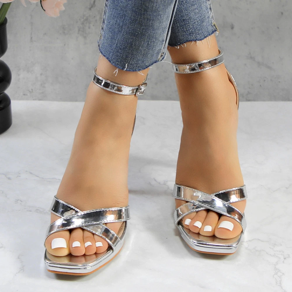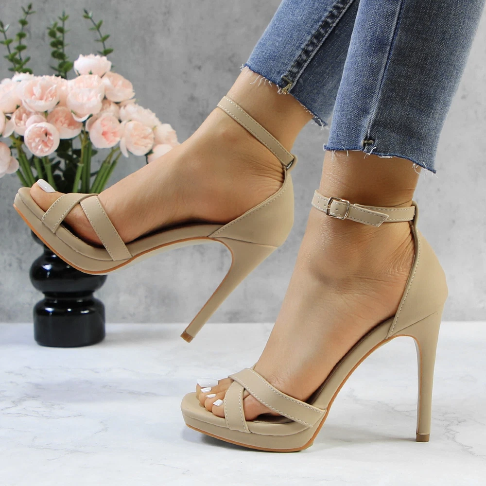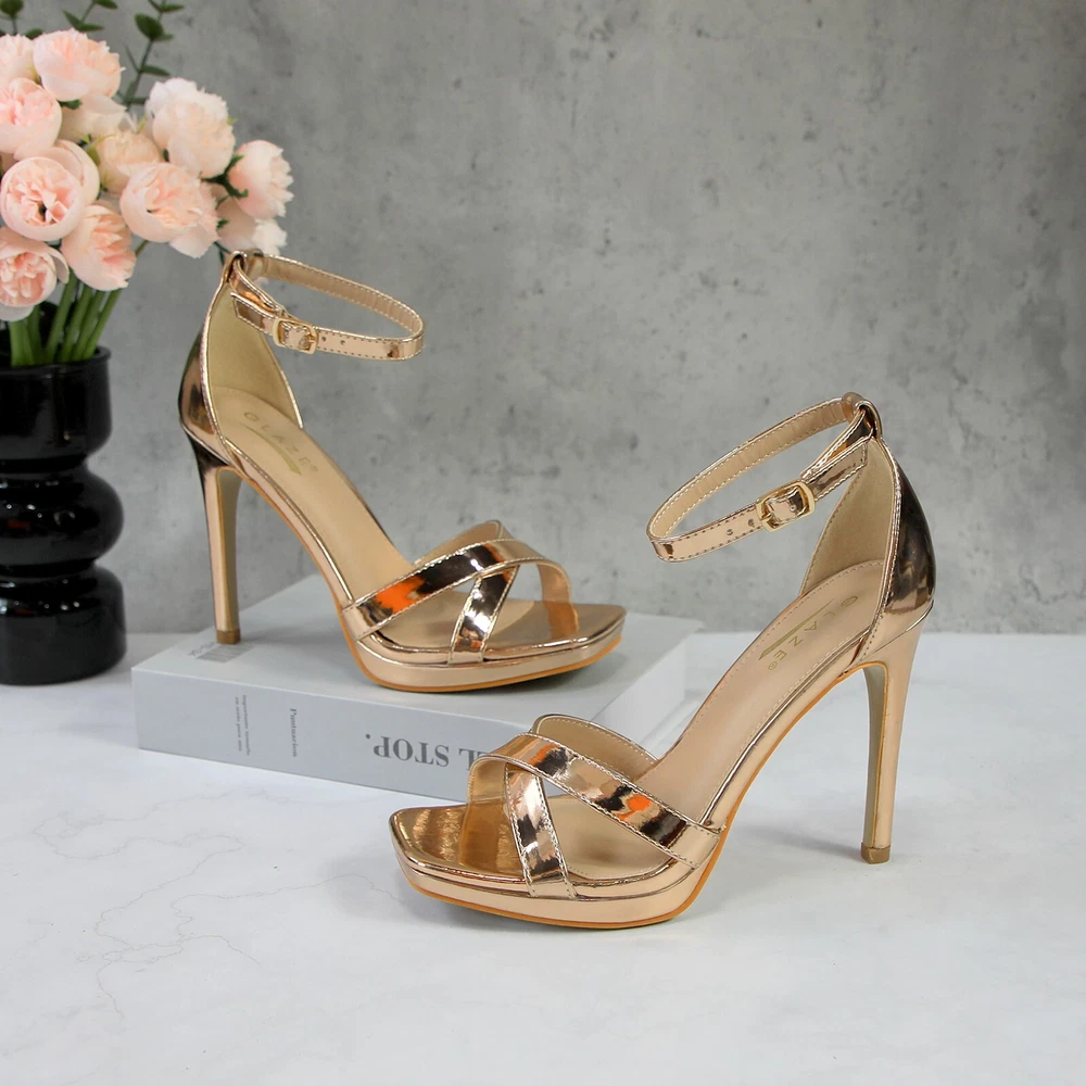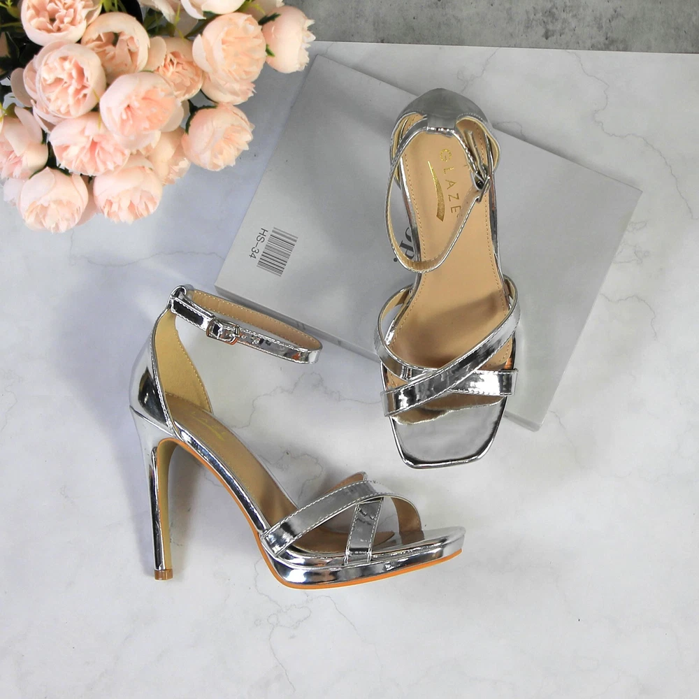 Glaze Womens 4 Inch Stiletto Sandals with Ankle Strap and Cross-Strap Platform