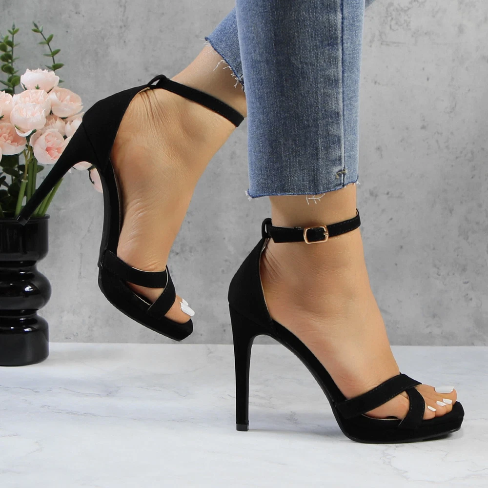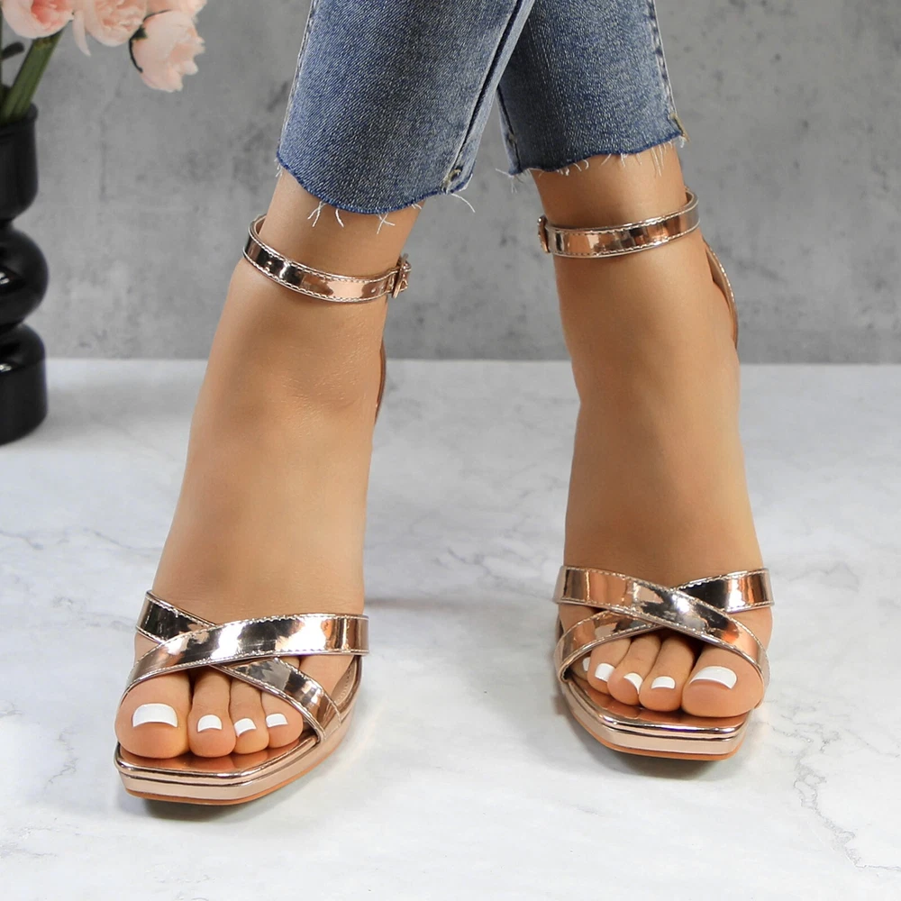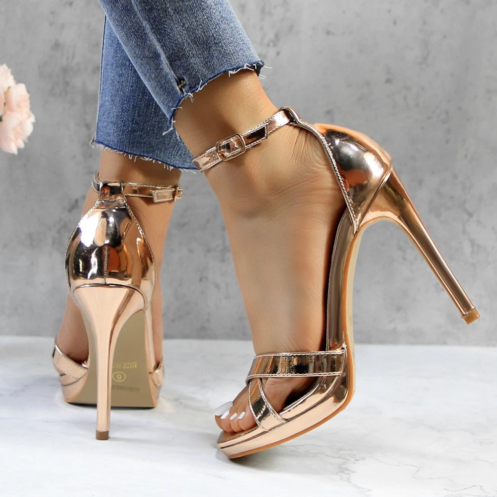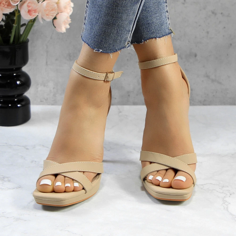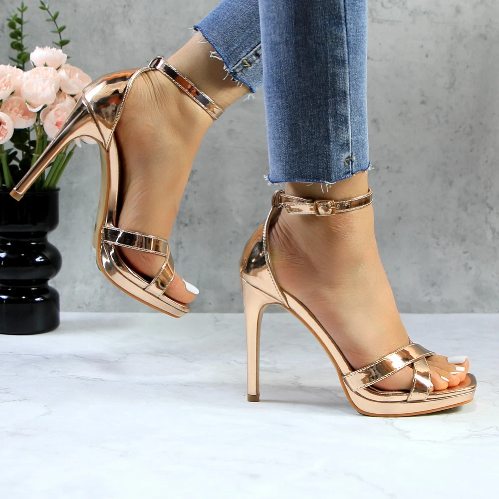 Glaze Womens 4 Inch Stiletto Sandals with Ankle Strap and Cross-Strap Platform