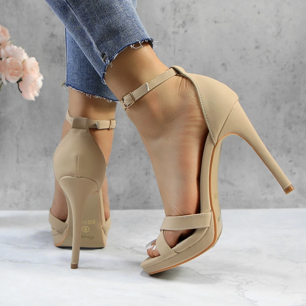 Country/Region of Manufacture: China Closure: Buckle Type: Heel Occasion: Formal, Party/Cocktail Platform Height: 0.5 Inch Heel Height: Ultra High (4 in & Higher) Toe Shape: Square Toe Shoe Width: Standard Style: Platform Brand: Glaze Outsole Material: Rubber Heel Style: Stiletto Department: Women Model: Open Toe Season: Fall, Spring, Summer, Winter Insole Material: PVC Upper Material: Polyurethane US Shoe Size: 5.5-10 Pattern: Solid Lining Material: Polyurethane