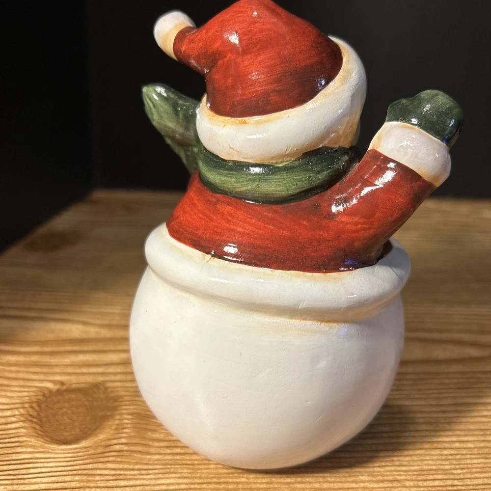 Type:FigurineVintage:NoProduction Technique:PotterySubject:SnowmanOriginal/Licensed Reproduction:OriginalColor:WhiteTheme:HolidayCountry/Region of Manufacture:Unknowngtin13:Does Not ApplyProduction Style:Art PotteryUPC:Does Not ApplyPattern:SnowmanFinish:GlossyAntique:NoMPN:Does Not ApplyMaterial:ClaySigned:NoBrand:UnmarkedAdditional Parts Required:NoItem Height:6 In.Model:Snowman