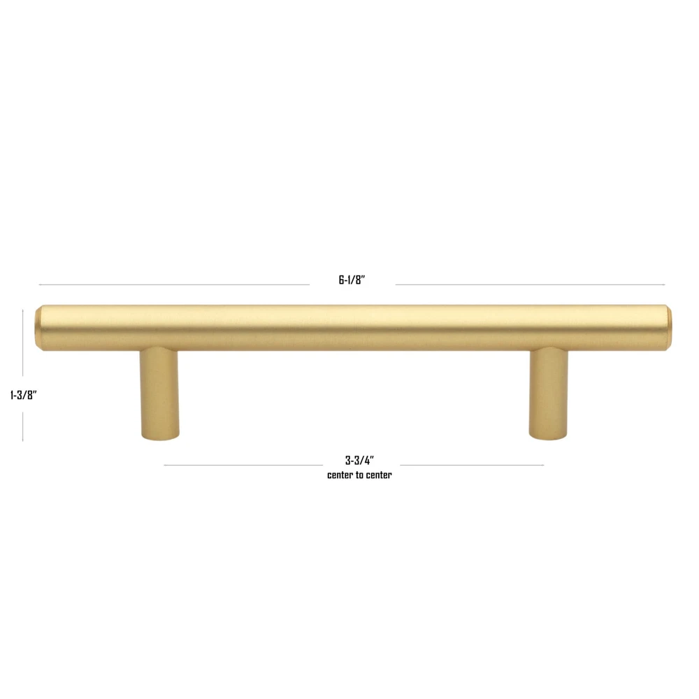 Finish: Satin Gold Dimensions: 6-1/8" length x 1/2" width x 1-3/8" projection Center to center screw spacing: 3-3/4 inches Weight: 5.3 oz. Mounting Hardware: #8-32 thread x 1" long screw(s) are included