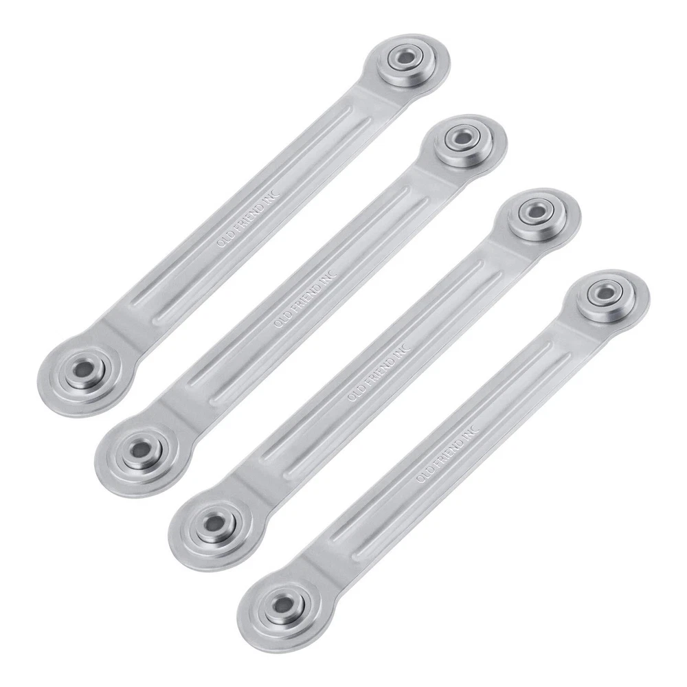 ✅Total length 7 ", hardware hole center distance 5-1/2 ", both ends 1-1/4 "offset, bolt hole diameter 1/4". Each group of products contains 4. ✅These glider rocker replacement parts are made of a durable, rigid material and are coated with galvanized surface technology that can withstand a variety of weather conditions. ✅Easy to install and DIY, suitable for furniture swings, sofas, slides and many other products. ✅Note that the product does not include hardware. It is best if you reuse your original nuts and bolts. However, if you want new hardware, stainless steel material will be a good choice ✅Refund or Replacement At Any Time Within 1 Year.