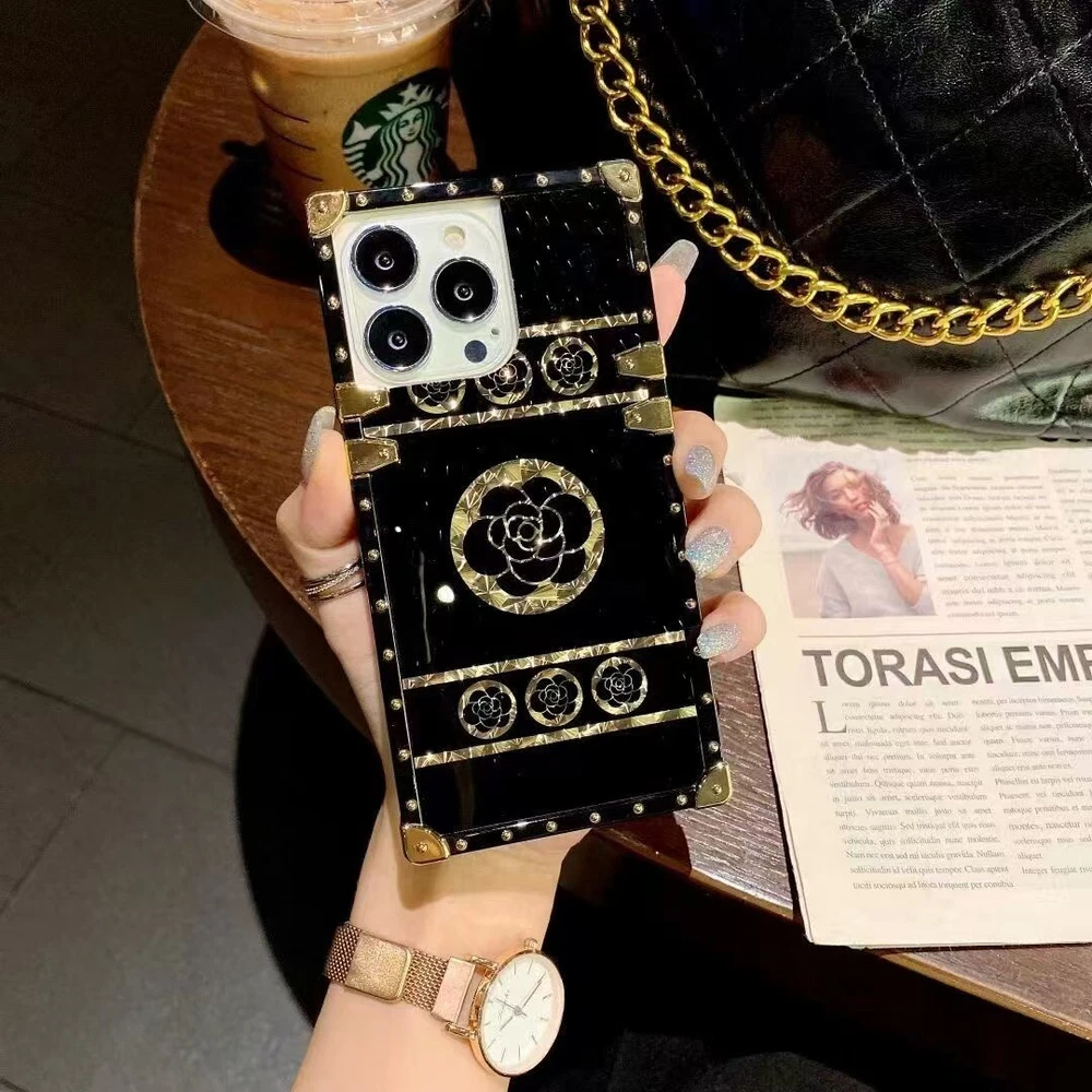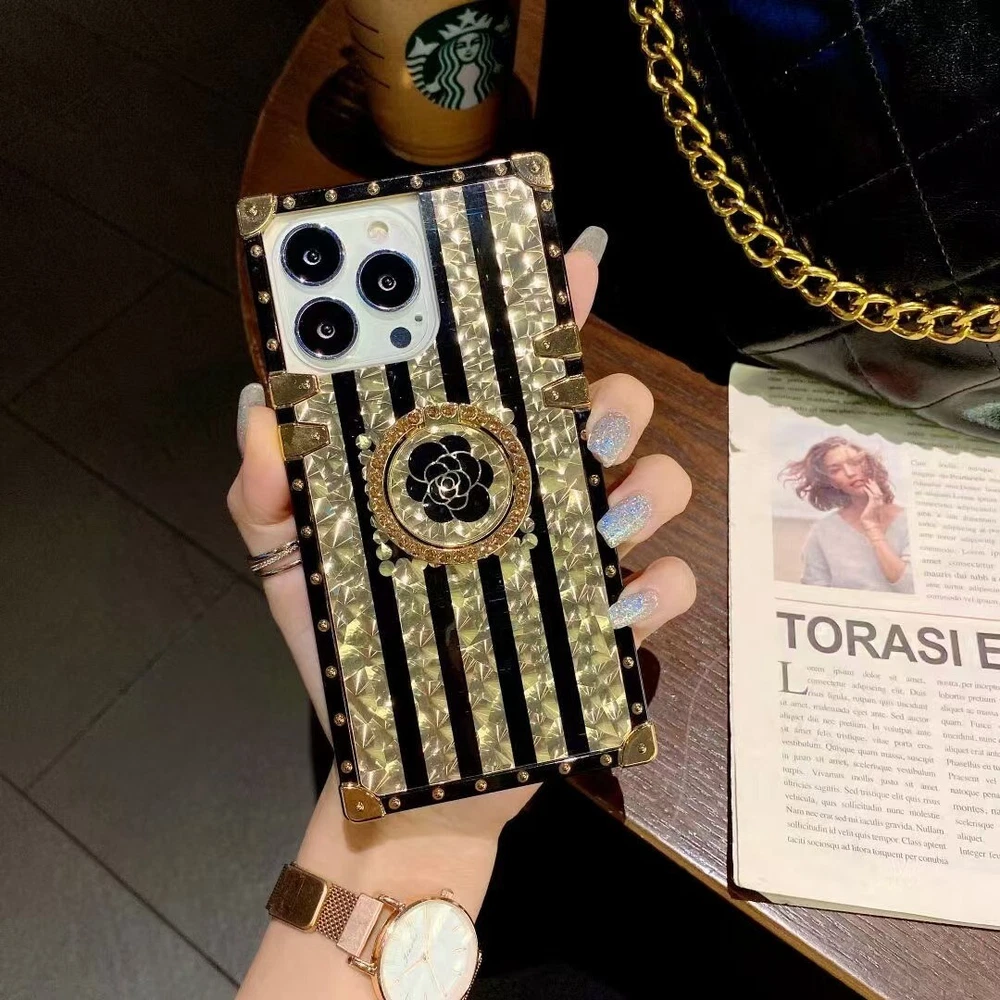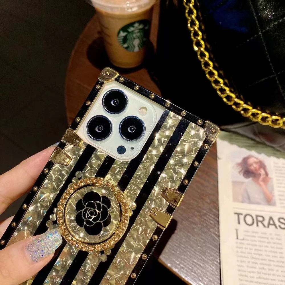 Glitter Bling Gold Flower Case with Ring for iPhone 16 Pro Max 15 14 13 12 11 XR XS