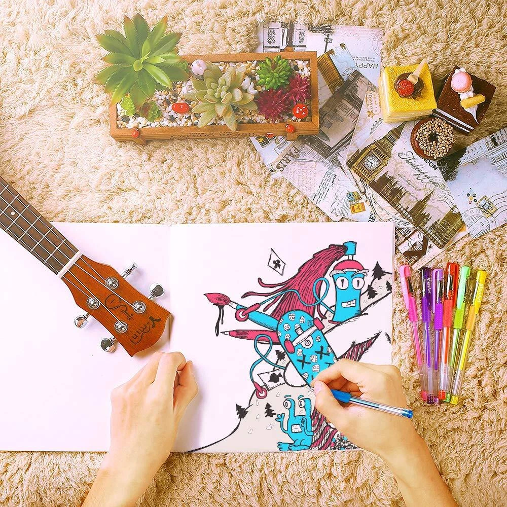 Let your creativity flow with Largest Whole Glitter Set by Aen Art Every moment has the potential to ignite the human spirit and inspire our hearts to create something new and beautiful. For moments like these let your creativity flow with the Aen Art Glitter Gel Pens and capture your ingenious ideas on paper and solidify them from the depths of your imagination. Premium Quality From the Precision 1.0mm Ball Point Tip, Comfortable Grip and replaceable core make our gel pens variety of uses.sketching, doodling, mandala coloring, school projects, scrapbooking, bullet journal, adult coloring books, writing diary, memos, making greeting cards, writing party invitations, writing letters to friends and family, making decoration in all kinds of activities. Long Lasting Enjoy your Aen Art Gel Pens for an insanely long time. The ink in each pen can be used hundreds of times and will still flow smoothly. When the ink does finally run out, the fun could still go on since each pen has a replaceable core. To ensure that your project doesn't come to an unforeseen halt, the pen itself is made from transparent hard plastic, so you can see how much ink is still left in the pen. The etched grooves on the body ensure that the pen doesn't roll away once placed on your work surface. Glitter Pens Only. This is large set of 100 glitter gel pens on Amazon. All 100 colors are unique and we add 30% more ink. It will last longer for adults coloring books, art project and journaling. Smooth and shine. As you know, Those pens are 0.8-1.0mm fine tip which could be used as colored pencil, but it would produce more fine and more vivid lines than pencils Easy to use. Each gel pen is designed with comfort grip, you will never feel tired when coloring for couple hours. Let your fingers relax with those perfect pens High quality ink. With acid-free and non-toxic ink, our sparkly gel pens allow you to enjoy when Coloring Books, School Projects, Party Invites, Greeting Cards, Doodling, Letters to Friends Our gel pens conform to ASTM-D4236. Try to give a set of glitter pens for a gift. For now, drawing pens are popular gifts for girls or artists who like to express imagination