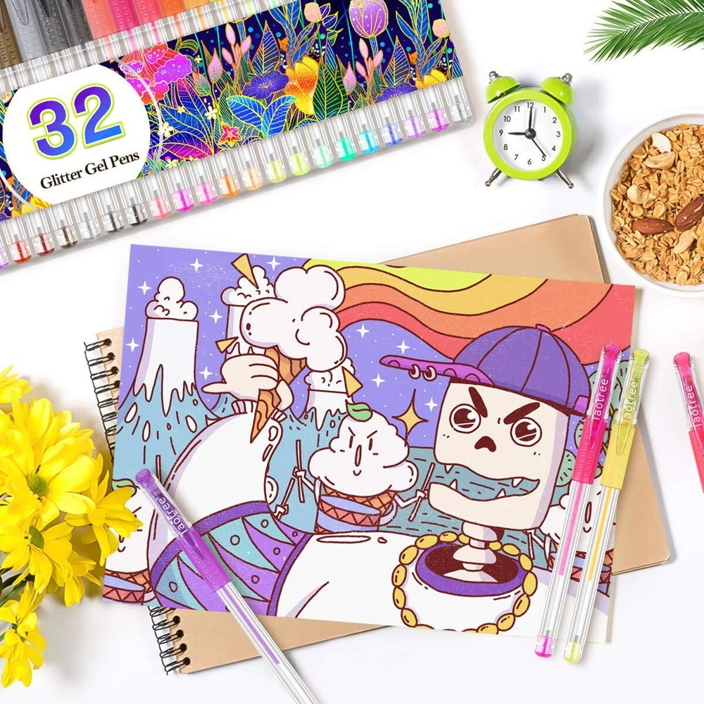 Glitter Gel Pens 32 Color Neon Glitter Pens Fine Tip Art Markers Set 40% More...