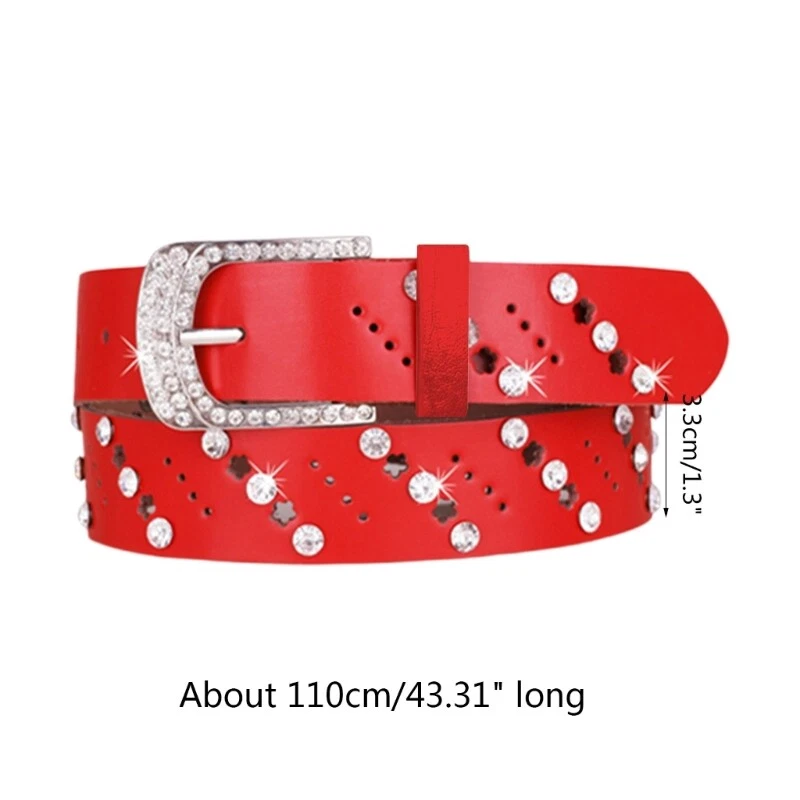 Features: Quality Material: this women for rhinestone belt made of high-quality faux-leather, the material and definite process makes any item reliable, comfortable and durable. Rhinestones Design: this gorgeous for rhinestone belts with vintage adjustable buckle, which are very and eye-catching, exquisite and beautiful, perfect accessory to the cowgirl look. great choice for all cowgirls. Occasion: women for rhinestone belts are perfect for formal or casual wear in any season and for all occasions and are also perfect for everyday wear. Perfect Gift: its for wonderful gift for family, lovers and perfect for every holiday, such as birthday party, Valentines day, Halloween, Thanksgiving, Christmas, Fashion waist belt can be suited with your any clothing. It can highlight your perfect and sexy body, make you looks more confident and in the crowd. Specifications: Material: Faux-Leather, Rhinestone Size: Approx. 110x3.3cm/ 43.31x1.29in Color: White, Black, Red, Leopard Print Package Includes: 1pc Rhinestone Decor Waist Belt note: 1. Please allow 1-2cm errors due to manual measurement, make sure that you do not mind before you order. 2. Due to the difference between different monitors, the picture may not reflect the actual color of the item.