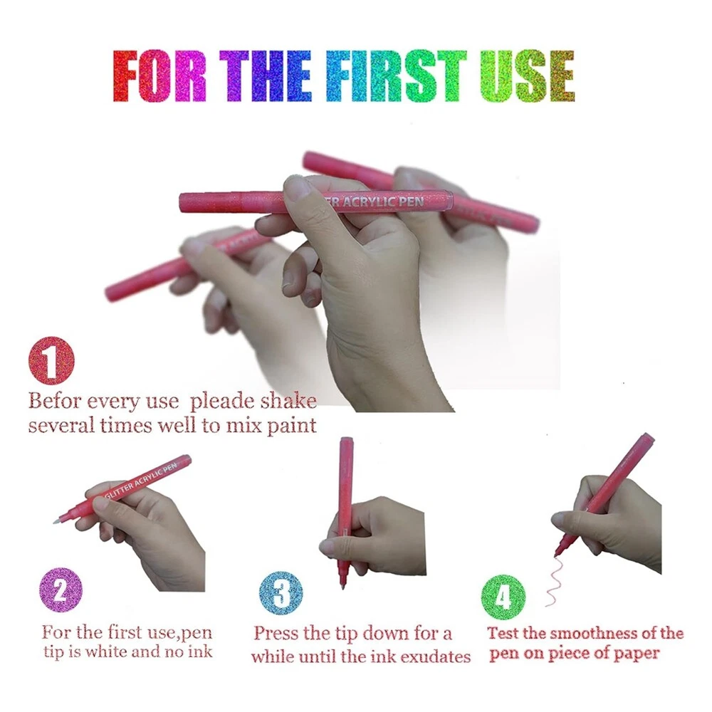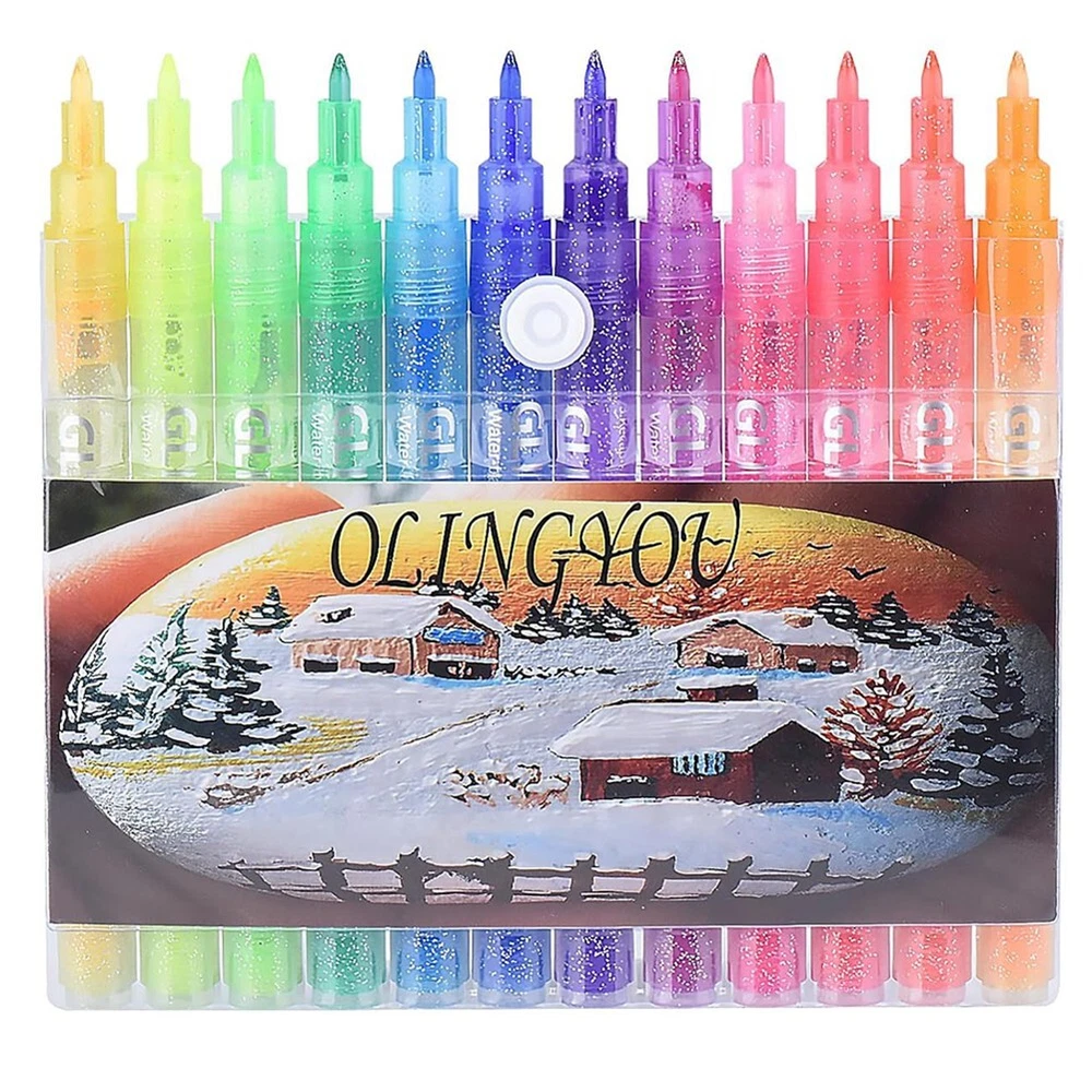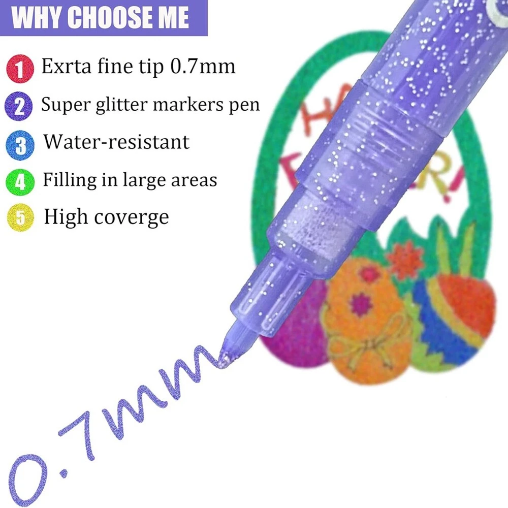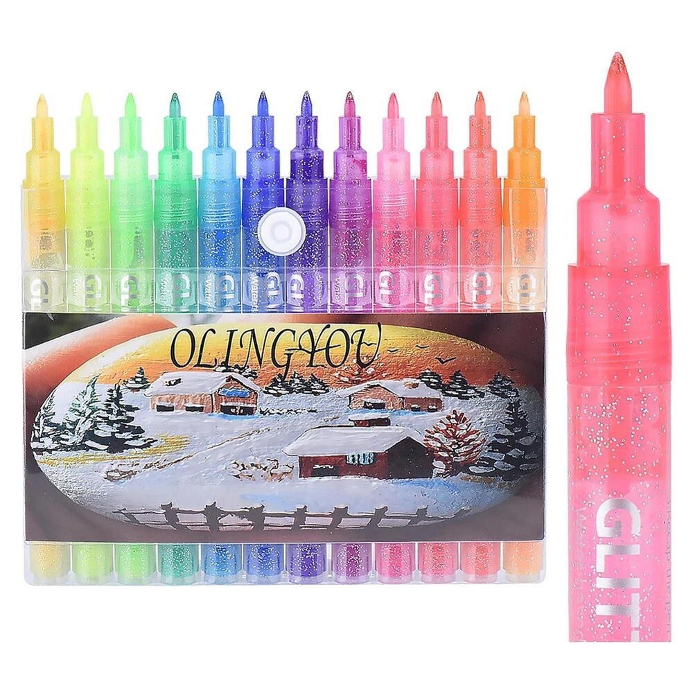 Glitter Paint Pens, 12 Colors Self-Outline Metallic Markers, Fine Point Tip4128