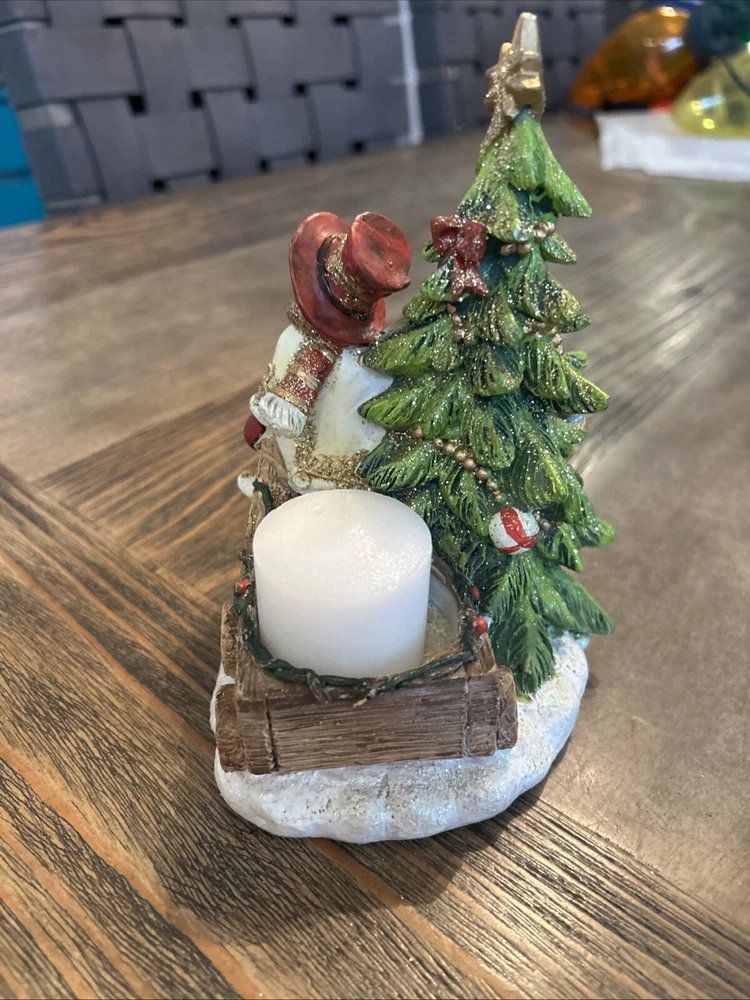 Add a touch of holiday cheer to your home with this glittered Christmas tree snowman cart tea light holder from Tii Collections. The multicolor resin candle holder stands at 6 inches tall and features a festive snowman design, perfect for the holiday season. The votive candle holder measures 3.5 inches in length and 5 inches in width, with a weight of 13 oz. It comes with a Christmas and holiday scent and is made in China. This collectible item is perfect for anyone who loves seasonal and holiday-themed decorations.