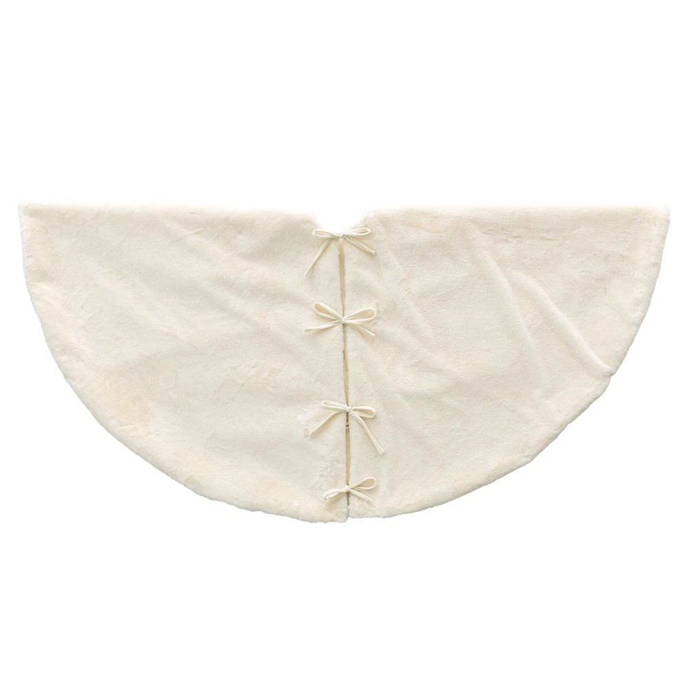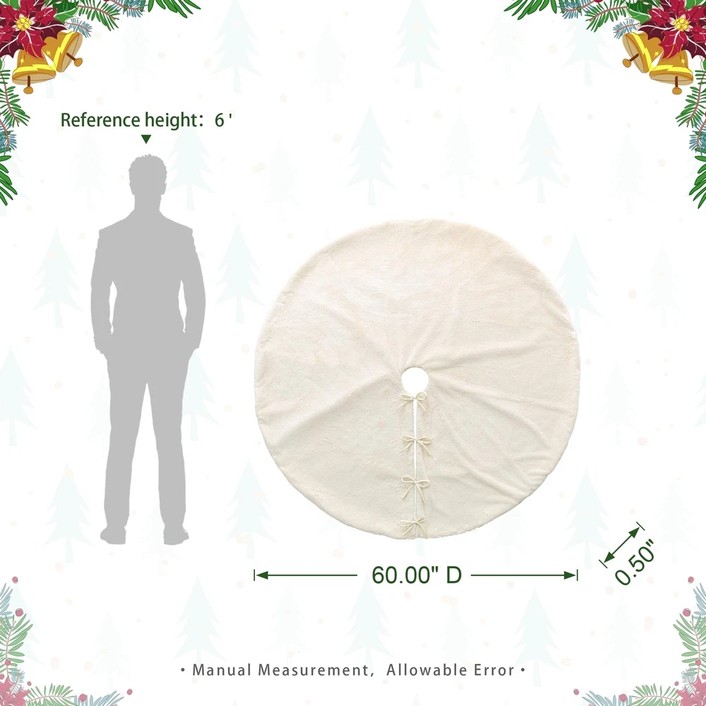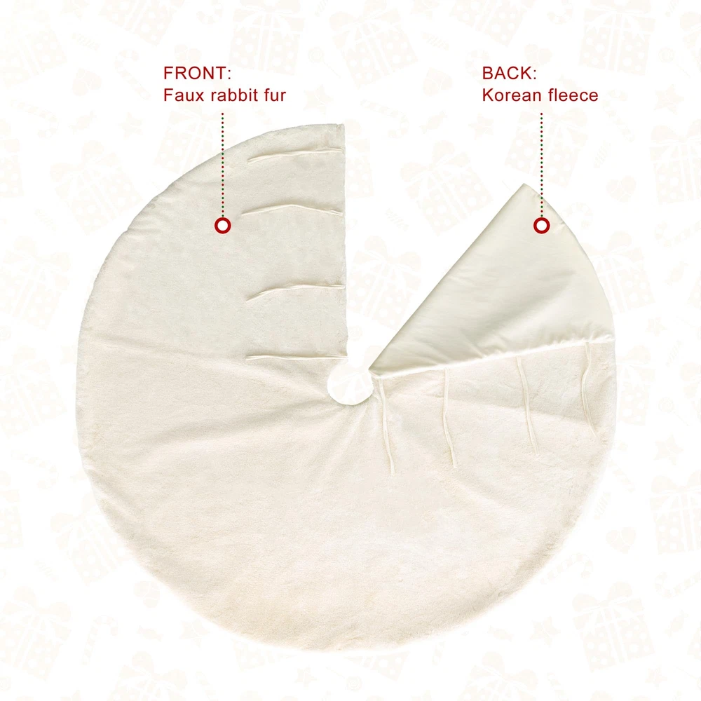 Material: Glitzhome Christmas tree skirt is made of 100% polyester fiber,Front: faux rabbit fur;Back:Korean fleece,which can ensure long-term use and keep the color bright and lasting.Machine wash cold on gentle cycle. Perfect Size:60"D, recommended to match a 54"-66"wide tree.You can put your favorite gift on the tree skirt to add more festive features.Durable and light weight, tailored to fit the bottom of your Christmas tree.The Christmas tree skirt can be used all year round. Unique Design:This Christmas tree skirt is designed to be placed around the bottom of your Christmas tree as a stylish protector against tree debris and as a mat for presents.The gorgeous and elegant faux rabbit fur makes it more soft and warmth. There are 3 tapes to lace-up for easy use. Christmas Warm Decor: This charming Christmas tree dress will decorate your Christmas tree and add a romantic and festive warm atmosphere. When your children and pets play on it, everything will become warm and sweet. Perfect Application: Very suitable for Christmas holiday home party tree decoration, living room, wedding, garden, holiday decoration, use this perfect accessory to bring a little holiday happiness. You can put all your favorite decorations and gifts on the tree skirt.