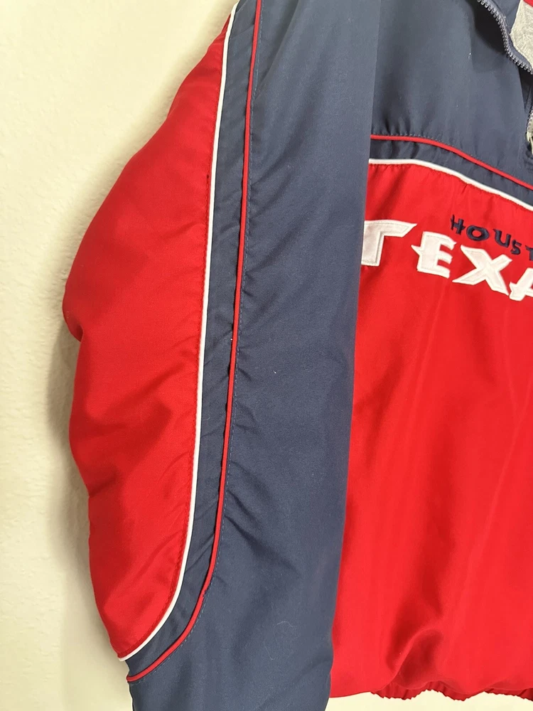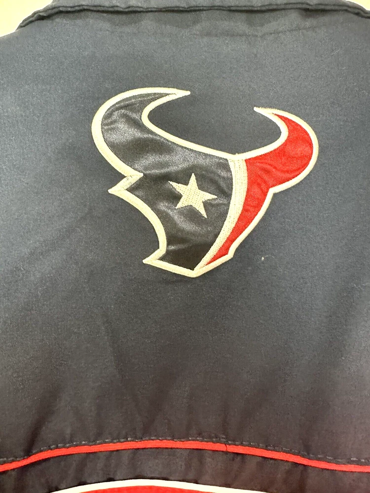 Event/Tournament: Football League: National Football League (NFL) Accents: V-Neck Knit Accents Mesh Lined Pullover Color Scheme:: Blue & Red Brand: NFL Product: Jacket Sport: Football gtin13: Does not apply Gender: Men Seller Notes: “Good Used Condition” Country/Region of Manufacture: China Player: Team Patches: Embroidered Size: L Color: Blue Team: Houston Texans Officially Licensed: Yes Pre & Post Season: Any Time Jacket Style: Pullover Shirt Sweater Windbreaker Jacket Shacket UPC: Does not apply