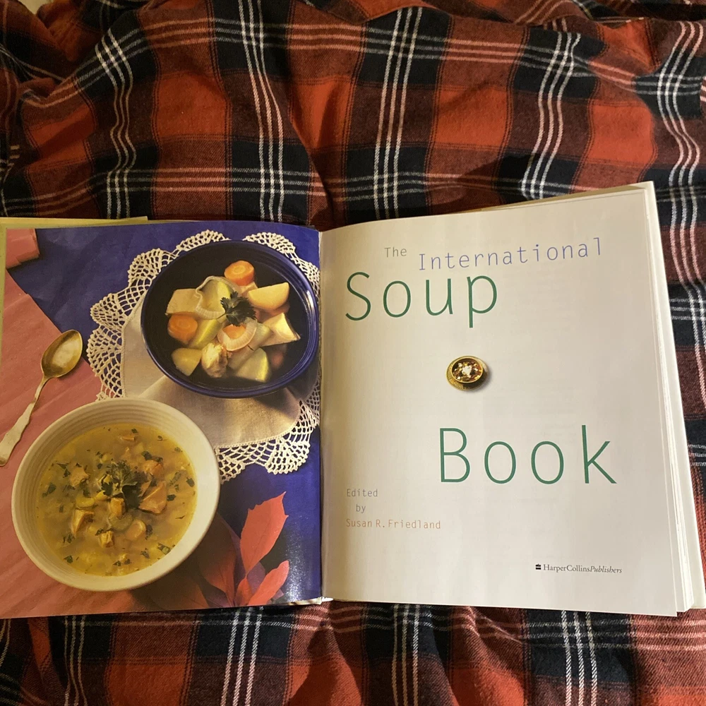 Number of Pages: 132 Book Title: The International Soup Book Language: English Publication Year: 1998 Intended Audience: Adults, Young Adults Format: Hardcover Genre: Cookbooks Publisher: Harper Collins Author: Susan R. Friedland, editor Features: Illustrated, Dust Jacket Topic: Soups