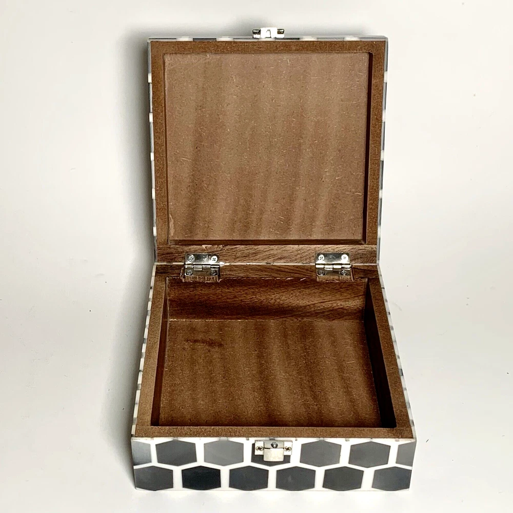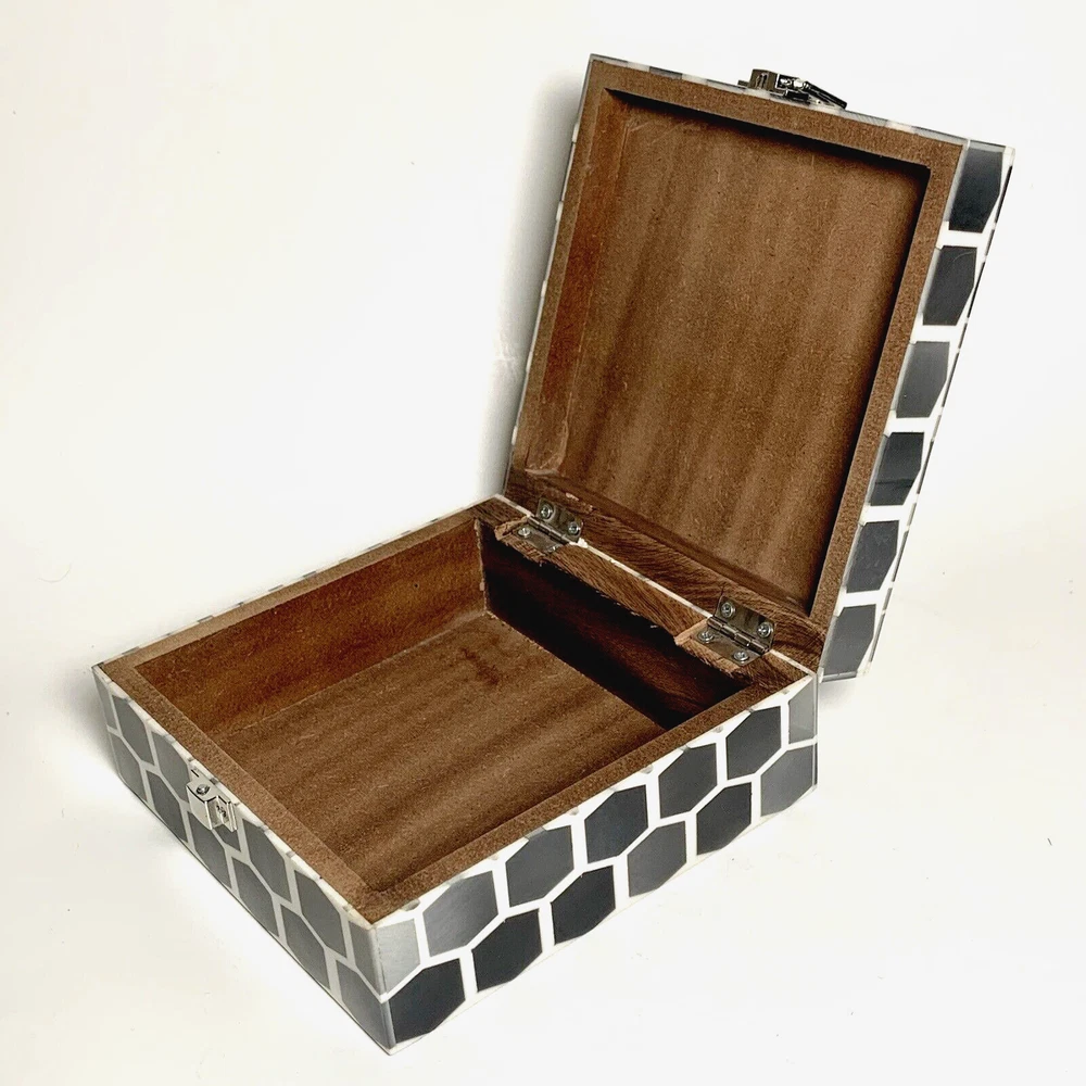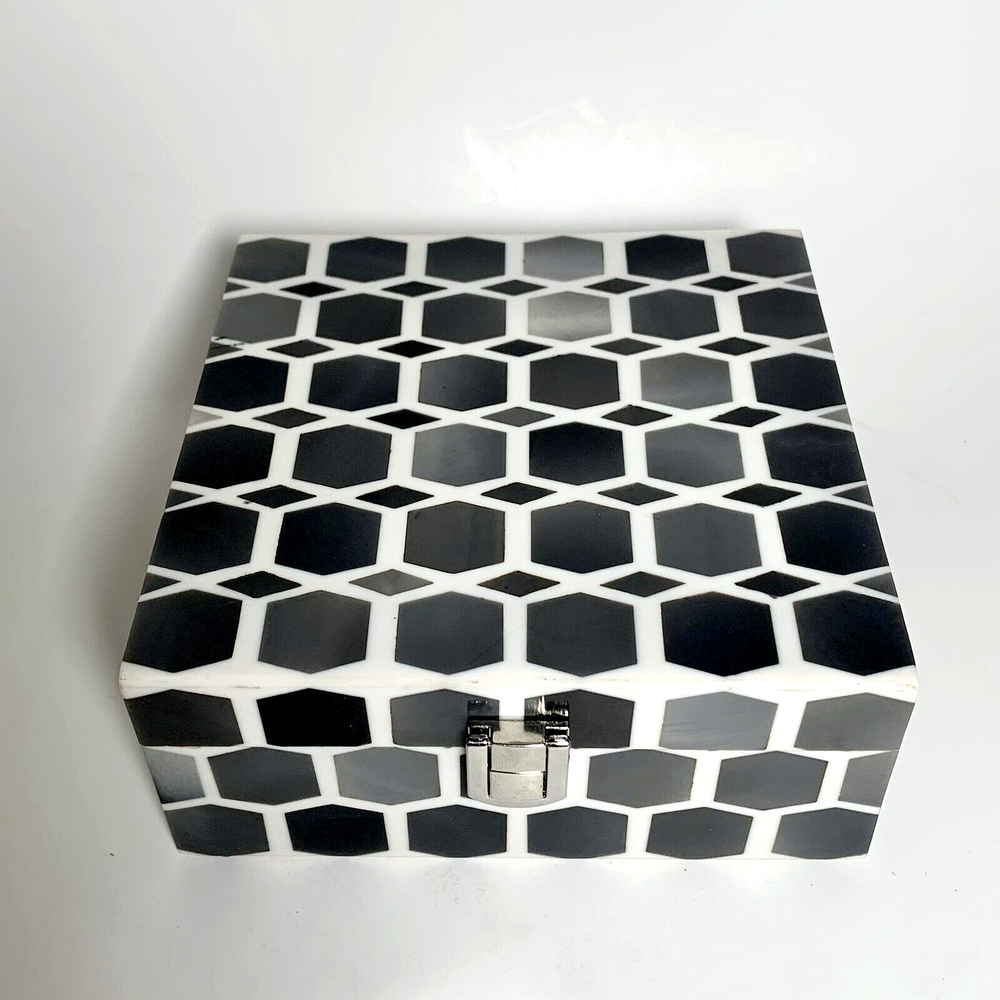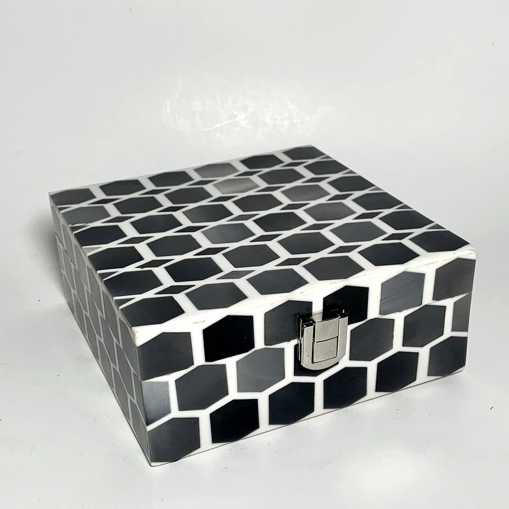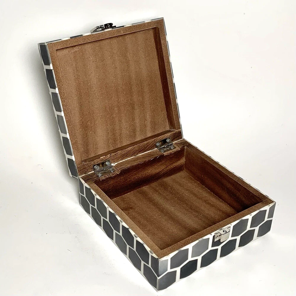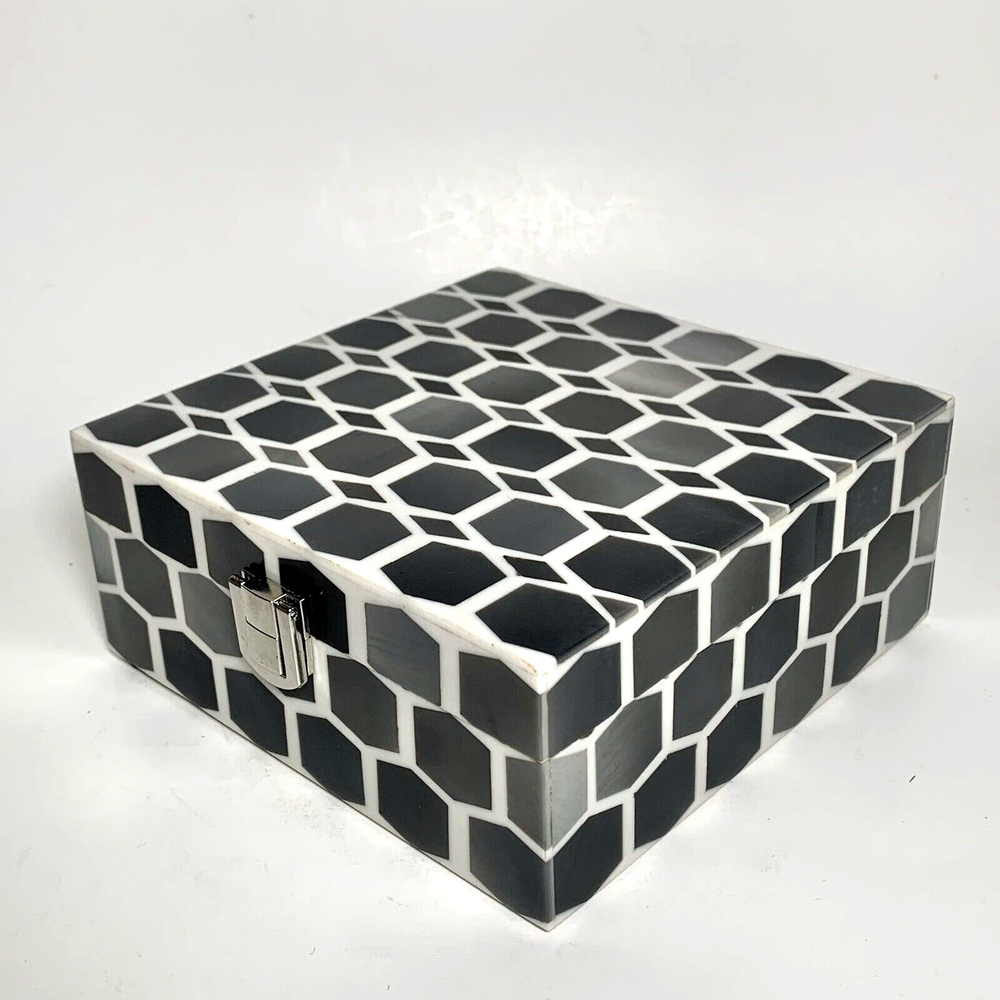 Occasion: All Occasions Brand: Global Views Style: Modern Collection: Keepsake Boxes Features: Silver Toned Latch and Hinges, Wood Lining Year Manufactured: 2021 Material: Resin Bone Wood Department: Adults Item Height: 2.5 in Finish: Satin Type: Box Size: Medium Handmade: Yes Subject: Boxing Era: 21st Century (2000-Now) Item Length: 6 in Item Width: 6 in Shape: Square Original/Reproduction: Original Color: Gray Country/Region of Manufacture: India Time Period Manufactured: 2020-Now Room: Any Room Care Instructions: Clean with Damp Cloth