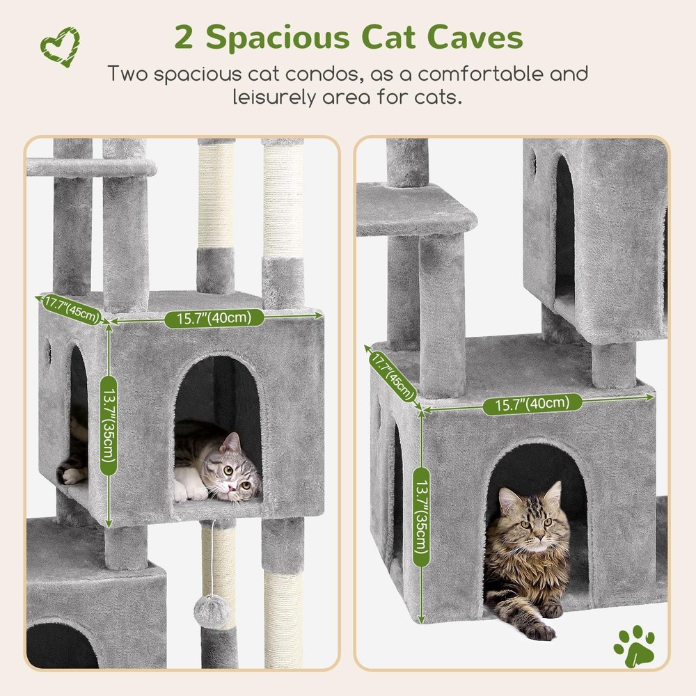 Tap here to read more about Globlazer Cat Tower for Indoor Cats, Heavy Duty Cat Trees for Large Cats Adul... BUY WITH CONFIDENCE 100K+ Satisfied Buyers as your satisfaction is our top priority with easy returns, and dedicated support. FAST & RELIABLE SHIPPING All orders are processed quickly with reliable shipping partners. Most items ship within 24 hours. 20+ YEARS OF EXPERIENCE We pride ourselves on serving customers worldwide for over 20 years at lowest Possible Prices. Globlazer Cat Tower for Indoor Cats, Heavy Duty Cat Trees for Large Cats Adul... Tap here to read more about Globlazer Cat Tower for Indoor Cats, Heavy Duty Cat Trees for Large Cats Adul... Product Description: Introducing our Globlazer F61 Cat Tower designed specifically for indoor cats, built to accommodate the needs of large adult cats like Maine Coons. This 61-inch cat tree offers a comprehensive design with multiple levels and features, providing a vertical space for climbing, lounging platforms for relaxation, and interactive toys for added enrichment. Dimensions: Size of Cat Condos: 17.7" x 15.7" x 13.8" inches Top Cotton Nest Size: 17.7" x 15.7" Sisal Posts (2 pieces): 45cm (1.47 feet) Sisal Posts (2 pieces): 40cm (1.31 feet) Net Weight: 41.45 pounds Gross Weight: 38.36 pounds Package Includes: 1 x Cat Tree 1 x Assembly Kit 1 x Installation Instructions Manual COMPREHENSIVE DESIGN - The 61-inch cat tree is crafted to cater to the diverse needs of large adult cats. With multiple levels and features, offers a vertical space for climbing, lounging platforms for relaxation, and interactive toys. EXTRA-LARGE TOP PERCH - This large cat tower with a large size 17.7"x 15.7" top perch serves as a versatile platform that is suitable for big fat cats or multiple kittens. Providing a prime spot for relaxation and observation. SPACIOUS CAT CONDOS - The two generously sized cat condos for indoor large cats measuring 17.7"x 15.7"x 13.8" each provide cozy retreats. Isn't one enough? There are two on this cat tree. Ideal for adult cats to seek a quiet spot to rest or observe their surroundings. CAT TOWER WITH SCRATCHING POST - The inclusion of seven natural sisal scratching posts not only promotes healthy scratching behavior but also helps maintain your cat's claws and protect your furniture. ENTERTAINMENT TOYS INCLUDED - In addition to the base functional aspects of the cat tree, the hanging mouse toys and dangling balls, enrich their daily routine. Item Specifics Included Components: Dangling Ball Model Name: F61 Item Package Quantity: 1 Breed Recommendation: All Breed Sizes Brand: Globlazer Recommended Uses For Product: Indoor Directions: Check The Firmness Of All The Screws At Least Once A Month. Size: 61Inch Style: Multi Level Specific Uses For Product: Scratching, Climbing, Jumping Number Of Levels: 6 Color: Light Grey About Us Payment Shipping Returns Welcome to Bixlife ! We are committed to providing high-quality products at competitive prices with exceptional customer service. Our mission is to make your shopping experience smooth, reliable, and worry-free. Every item we offer is carefully selected and shipped with care. Shop with confidence knowing your satisfaction is our top priority. Shop Smart. Shop Secure. Shop Bixlife! We only accept eBay Managed Payments . This allows you to securely pay with your preferred method, including major credit and debit cards, PayPal, Apple Pay, and Google Pay (where available). Payment is required at checkout to ensure fast and smooth order processing. Domestic Shipping Only We ship exclusively within the United States . No International Shipping We do not ship outside the USA at this time. Orders are processed and shipped promptly after payment is received. Tracking information will be provided once your order has been dispatched. We offer a 30-day return policy from the date of delivery. Items must be returned in their original condition and packaging . Buyers Remorse Returns : A 15% restocking fee will be applied. Return shipping costs are the responsibility of the buyer unless the item is defective or not as described. Refunds will be issued back to your original payment method once the return is processed. We hope you will love your purchase, however if you need to return it, we have a 60 day return policy. We hope you will love your purchase, however if you need to return it, we have a 60 day return policy. We hope you will love your purchase, however if you need to return it, we have a 60 day return policy. We hope you will love your purchase, however if you need to return it, we have a 60 day return policy. Other Deals PawGiant Cat Wall Shelves, 5-in-1 Cat Furniture Set, Wooden Cat Climber with ... $84.95 AMHANCIBLE Heavy Duty Cat Tree for Indoor Cats Large Adult 20 lbs+, 83 Inch M... $198.99 Globlazer Tall Cat Tower, 76 inch Multiple Level Cat Climbers for Indoor Cats... $215.53 Globlazer Large Cat Tower for Multiple Indoor Cats, Heavy Duty Cat Tree for L... $177.22 Globlazer Sturdy Cat Tree, 68-inch Large Cat Tower for Indoor Adult Cats 20 l... $204.43 Globlazer Corner Cat Tree 66 inch Multi-Level Climbing Tower Kitty Condos Cat... $163.62 Add suggested items to your listings - Check it out on 3Dsellers.com eBay listing template by 3D sellers.com - Try for Free!