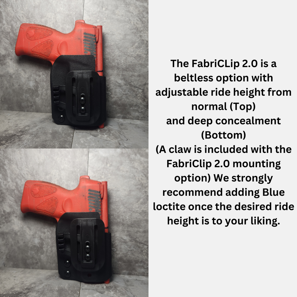 All of our holsters are handmade in the USA, optics ready, full sweat guard, lifetime warranty with free shipping to the lower 48 only. This beltless IWB carry option is a very good option for those that want to leave the belt behind or wear clothing that doesn't offer belt loops. This carry option is very underrated. The Fabriclip 2.0 is a beltless option and includes a claw. (Claw is included from factory and is included in the price.) \ https://www.youtube.com/watch?v=h3IkcZfbvrI&t=32s&ab_channel=WARFYTREquipment Your holster may look different than what is shown depending on the size. The concept will be the same as shown. Return Policy Our return policy is designed to make your shopping experience as easy and stress-free as possible. If you are not completely satisfied with your purchase, you may return it within 30 days of the item received date (Customer pays for return shipping). The item must be in its original condition and packaging. We will issue a refund for the item. Please contact us to initiate the return process.