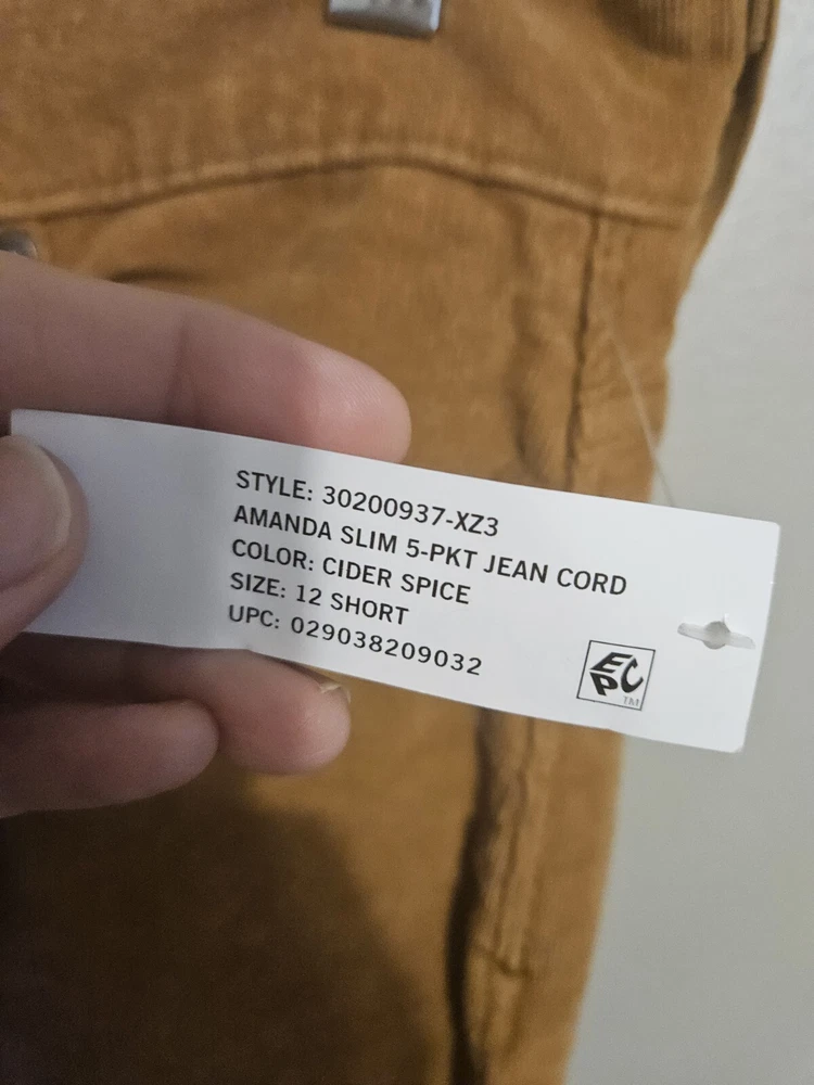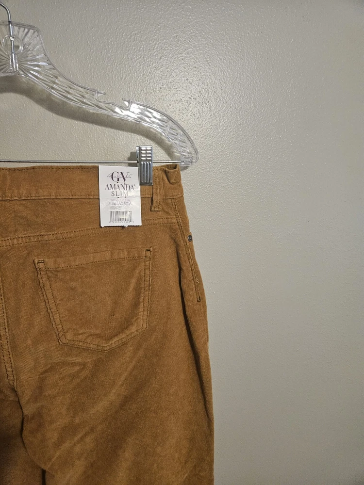 Gloria Vanderbilt Womens Amanda Slim Corduroy Pants Stretch Cider Spice Size 12S
