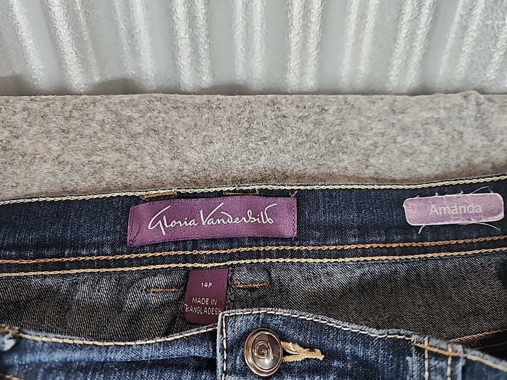 Fabric Wash: Medium Product Line: Gloria Vanderbilt Amanda Fabric Type: Denim Department: Women Size Type: Petites Material: Cotton, Polyester, Spandex Brand: Gloria Vanderbilt Garment Care: Machine Washable Color: Blue Features: Pockets, Stretch Model: Gloria Vanderbilt Amanda Country/Region of Manufacture: Bangladesh Pocket Type: 5-Pocket Design Waist Size: 33 in Accents: Logo Closure: Zip Size: 14P Theme: Bohemian, City, Classic, Outdoor, Designer Style: Straight Pattern: Solid Inseam: 25 in Fit: Regular Season: Fall, Spring, Summer, Winter Type: Jeans Distressed: No Personalize: No