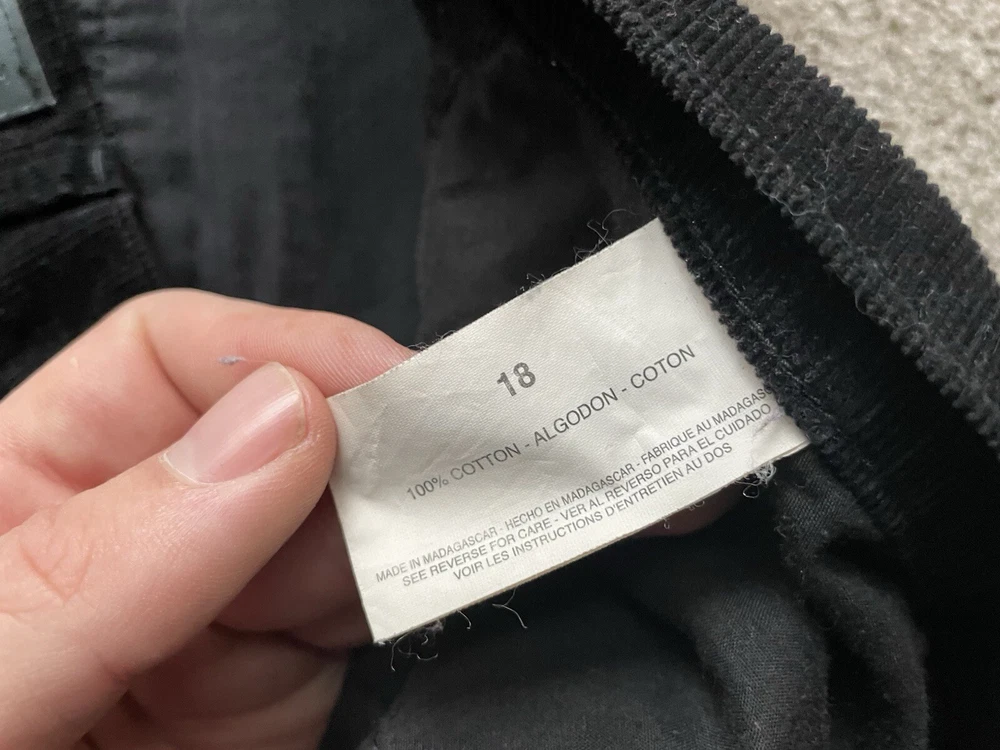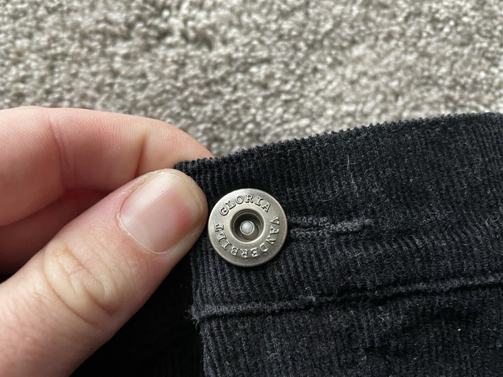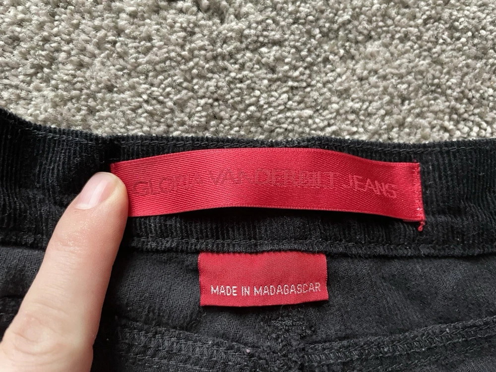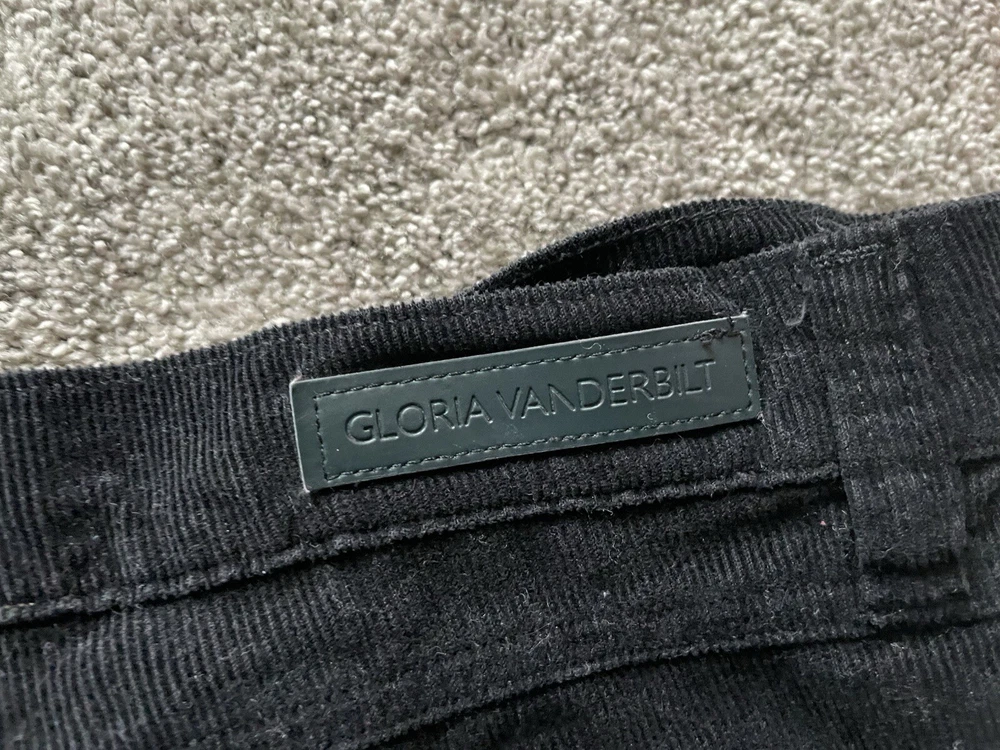 Country/Region of Manufacture: Madagascar Fabric Wash: Dark Style: Straight Handmade: No Brand: Gloria Vanderbilt Fabric Type: Corduroy Inseam: 33 in Rise: Low (6.5-8.5 in) Material: Cotton, 100% Cotton Pattern: Solid Closure: Zip, Button Garment Care: Machine Washable Vintage: No Department: Women Size: 18 Waist Size: 36 in Color: Black Personalize: No Features: Comfort, Easy Care, Pockets Season: Winter, Spring, Fall Accents: Logo, Button, Zipper Pocket Type: 5-Pocket Design Theme: Preppy Type: Jeans Fit: Regular Size Type: Regular