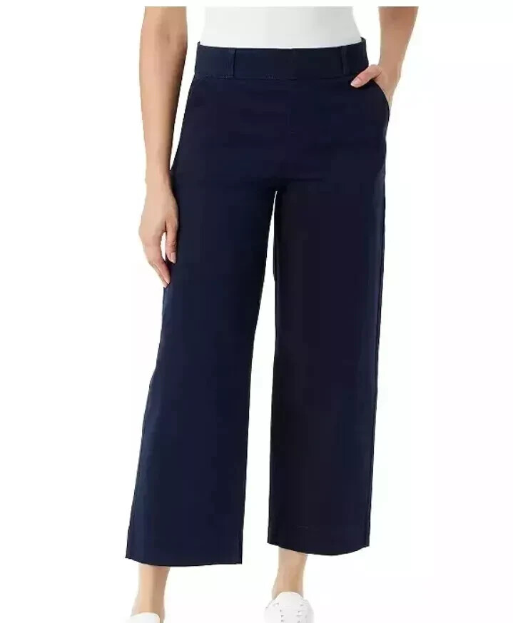 Gloria Vanderbilt Women's Pull-On Wide-Leg Crop Pants Size: 10 Color: Navy Content: 98% Cotton / 2% Spandex