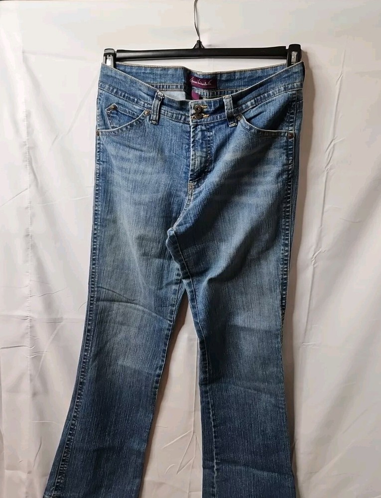 Elevate your casual wardrobe with these Gloria Vanderbilt women's jeans. With a light wash denim and a classic straight leg style, these jeans are perfect for any season. The jeans are made of a blend of cotton, polyester, and spandex, providing both comfort and stretch. Featuring a zip and button closure, along with pockets, these jeans are machine washable and easy to care for. The size 10 jeans have a regular fit and are suitable for women of all sizes. Add a button accent to your outfit with these stylish jeans from Gloria Vanderbilt. The inseam is 32" long. Smoke and pet free home Thanks for your interest