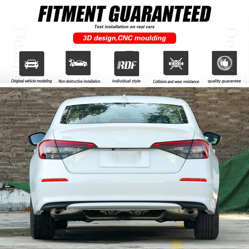 Fit for Honda Civic 11th 2022-2023 Features: Material: High Quality ABS Functions: Light and durable, create a new iconic look, enhancing the aerodynamic performance of the car Processing: CNC moulding, test installation on real car, fitment guaranteed Surface finish: Double layered UV-Protected clear coating, shining and smooth surface Packing: Multilayer protected export carton, shockproof and crashproof Installation: Tape included in the package for easy installation, perfect fitment, no modification Specification: Material: ABS Color: Gloss Black Packaging: Polyfoam box Package includes: 1x Gloss Black Spoiler Fit for Honda Civic 11th 2022-2023 Pls check the above fitment information or send us car pictures to verify before order, thanks a lot! Features: Material: High Quality ABS Functions: Light and durable, create a new iconic look, enhancing the aerodynamic performance of the car Processing: CNC moulding, test installation on real car, fitment guaranteed Surface finish: Double layered UV-Protected clear coating, shining and smooth surface Packing: Multilayer protected export carton, shockproof and crashproof Installation: Tape included in the package for easy installation, perfect fitment, no modification Specification: Material: ABS Color: Gloss Black Packaging: Polyfoam box Package includes: 1x Gloss Black Spoiler Warranty and Returns: Covered by our 30-days money-back guarantee, 1-year Warranty and friendly customer service