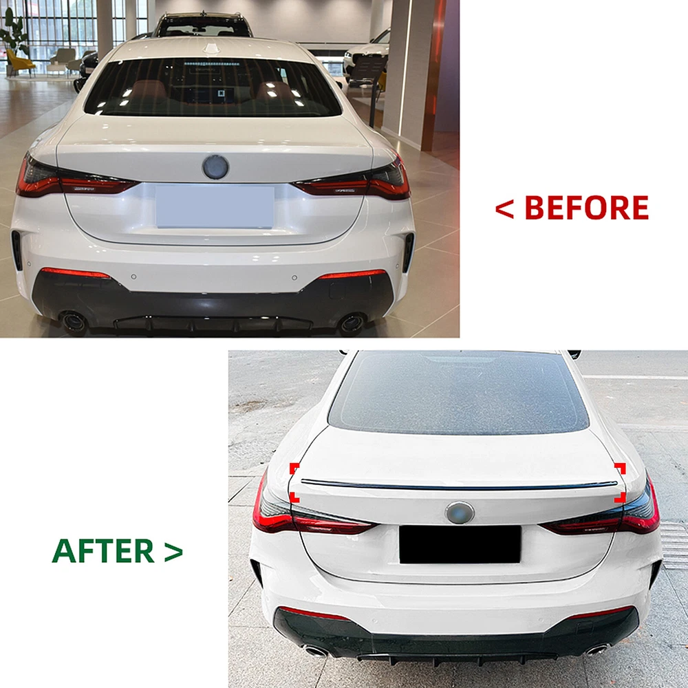 Product Description *Important Notice* Please kindly check your car model and make sure the model fits in case of buying the wrong product. Specifications : Fitment : For BMW 4 Series G22 2020-2024 ( After June 2020 ) Material : High Quality ABS Plastic Color : Gloss Black, As Pictures Installation : Direct Add On Place on Vehicle : Rear, Upper Package Including : 1 Piece of Rear Trunk Spoiler Lip Wing Feature: -According to the original factory specifications. -100% brand new and high quality guaranteed. -Decorate your car charming luxury vivid. -Perfect cover that is useful, helpful and so practical. -Made of light weight & top-grade durable ABS plastic material. -Will dramatically improve the sporty appearance for your car. Method Of Installation: Step 1 Please clean the area and eliminates the substance before mounting this product. Step 2 To check the installation area according to the vehicle with this product first and then release the back of adhesive tape paper ( double-sided tape, a label ) is removed Step 3 Products are equipped on the vehicle with exactly and use a clean cloth to press evenly is attached. Step 4 Products within 24 hours after installed, please avoid washing your car and touching the water. Installation Notice : 1. No installation instruction included, professional installation is highly recommended!!! 2. Any damage and improper installation during the installation will not allow to get money refund. 3. Before stick it please clean tiny particles and dust on the surface. * Please leave us positive feedback if you are satisfied with our product and service, if not please contact us,we will solve your problem asap, many thanks. Important Notice : all of our products are required to be installed in professional Modification car shop , NOT every car shop can make it ! Our products are modified car parts , NOT original products ,Small install gap is Allowed ! Please contact us first and DON'T leave bad feedback / DON'T open dispute ,thanks . SHIPPING PAYMENT WARRANTY FEEDBACK Friend, please check the listing location , if the location in USA/AU/UK,then the estimated shipping time is: 3-5 business days And most orders will be shipped within Two working day. NOTE : Import duties, taxes and charges are not included in the item price or shipping charges. These charges are the buyer's responsibility. We accept payment via various payment way If there is any problem, please feel free to contact us ,thanks ! We will offer the best quality product to our customer . If there is an problem, you can feel free to contact us , we can offer the best service to you . And if you need the installation instruction , please let us know ,we will try to send it to you . If you have any question or concern, please do not hesitate to contact our customer support team. Please do contact us first before opening a return request, leaving low ratings or negative/neutral feedback. SHIPPING Friend, please check the listing location , if the location in USA/AU/UK,then the estimated shipping time is: 3-5 business days And most orders will be shipped within Two working day. NOTE : Import duties, taxes and charges are not included in the item price or shipping charges. These charges are the buyer's responsibility. PAYMENT We accept payment via various payment way If there is any problem, please feel free to contact us ,thanks ! WARRANTY We will offer the best quality product to our customer . If there is an problem, you can feel free to contact us , we can offer the best service to you . And if you need the installation instruction , please let us know ,we will try to send it to you . FEEDBACK If you have any question or concern, please do not hesitate to contact our customer support team. Please do contact us first before opening a return request, leaving low ratings or negative/neutral feedback. powered by On Mar 6, 2025 at 09:35:44 PST, seller added the following information: