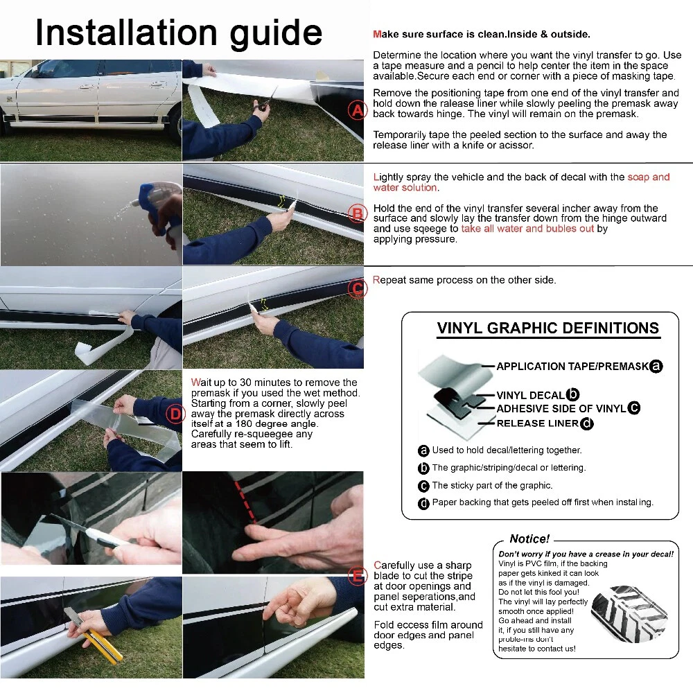 Description This listing is for 2 pieces of red pre-cut side fender decal sticker fit for Ford F-150 F-250 F-350. This eye catching decal will give your car a racing sporty look. Feature 2x red side skirt stickers (Left & Right) Made by automotive grade graphic vinyl Come with 3M self-adhesive tape on the back Pre-cut shape for easy installation Ultra long lifespan for outdoor use, will not fade or run even under extreme weather Can be removed without residue if needed Installation 1) Clean up the surface, make sure no dirt and dust, and completely dry. 2) Peel the back sheet off the decal slowly (do not peel all the way through) and make sure no water or dirt go into the back of the decal 3) Slowly attach the decal to the desire area to avoid air bubble 4) Continue to attach the rest Shipping Return Feedback About Us Shipping Order will be usually shipped out the same or next business days once the payment is made and cleared. We only ship to confirmed PAYPAL addresses. Your PAYPAL address must match your Shipping address. Service transit time is provided by the carrier and excludes weekends and holidays. Transit times may vary, particularly during the holiday season. If you have not received your shipment within 30 days from payment , please contact us. We will track the shipment and get back to you as soon as possible with a reply. Our goal is customer satisfaction! Shipping charges do not include custom & brokerage fees, buyers responsible for all custom and brokerage fees. Return 60 Days Limited Warranty: Warranty is for EXCHANGE ONLY. All products come with a 60 days limited warranty against manufacturer's defects. Buyer could choose exchange to same item or apply store credit to other items in our store. Exchange will be processed after we received return. Return/Refunds: We only accept refund request for un-opened or un-used item, buyer has to return item in original condition and retail package within 30 day for refund(item price minus 20% restock fee). The shipping charge is not refundable. Refund will be processed after we received return. You have 7 days to contact us and 10 days to return it from the date it was received. If this item is in your possession more than 7 days, it is considered used and we will not issue you a refund or replacement. There are NO EXCEPTIONS! All returned items must be in the original packaging and you must provide us with the shipping tracking number, specific reason for the return, and your eBay ID. Return shipping is to be paid by the Buyer Feedback We maintain high standards of excellence (five stars review)and strive for 100% customer satisfaction! FEEDBACK IS VERY IMPORTANT TO US. However, If you have any questions or concerns, feel free to contact us and we will do our best to assist you in resolving any issues. Your satisfaction is our primary concern. If you are not satisfied with your purchase in any way, please let us know and we will correct any problem before you leave any neutral of negative feedback. About Us Our facility is located in Los Angeles, Southern California. We provide you auto accessories, LED headlights, DRL, fog lights, funny cool stickers and many more automotive products. Your satisfaction is our No.1 goal! Customer Satisfactory Do not hesitate to contact us any time before and after your purchase, we are committed to your 100% customer satisfaction. We back our commitment with superb service & customer satisfaction guarantee. We are here and ready to assist you with any questions or concerns you might have before or after the purchase. Our goal is to make sure you are a happy customer and pleasant shopping with us. Feedback If you are satisfied with the purchase and our total service, your comment is very important in our business success. Please take a minute to leave us a positive feedback with an overall Detailed Selling Rating (DSR) of 5. On Aug 8, 2024 at 14:34:42 PDT, seller added the following information: On Aug 12, 2024 at 03:16:58 PDT, seller added the following information: On Nov 7, 2024 at 18:34:06 PST, seller added the following information: