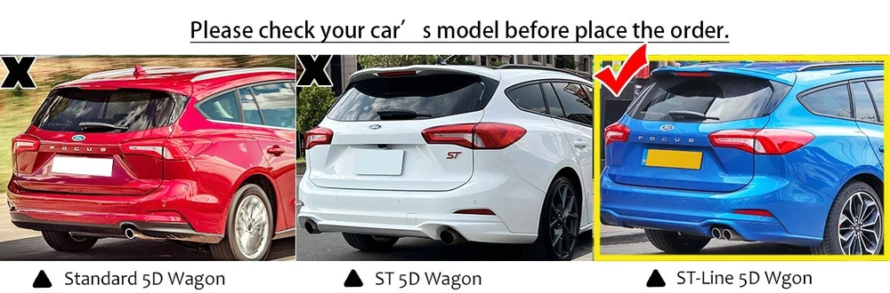 == Painted Black == MODEL: For Ford Focus MK4 SUBMODEL: Focus MK4 5DR ST-Line Wagon (NOT FIT 4DR Sedan/ Hatchback) STYLE(S): Rear Middle Trunk Spoiler 1PCS YEAR:2019-2025 Material: FRP Fiberglass !!ONLY Fit 19-24 Estate / Wagon ST Line Ford Focus . NOT Fit Estate Standard / ST Model , 5D Hatchback 4D Sedan and Active. **Surface Paint : Painted Glossy Black ONLY Please take some picture of rear trunk include bumper to me before you purchase it. I will check it could fit or not. ----------------------------------------------------------------- *Perfect for an aggressive updated look! All items are Brand New unless stated otherwise on the listing. We sell DIY (Do It Yourself) Items with a few exceptions. We take no responsibility in teaching you how to install. Professional installation is strongly recommended. Powered by eBay Turbo Lister The free listing tool. List your items fast and easy and manage your active items. Powered by SoldEazy