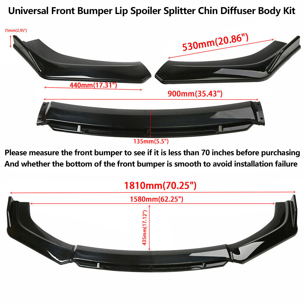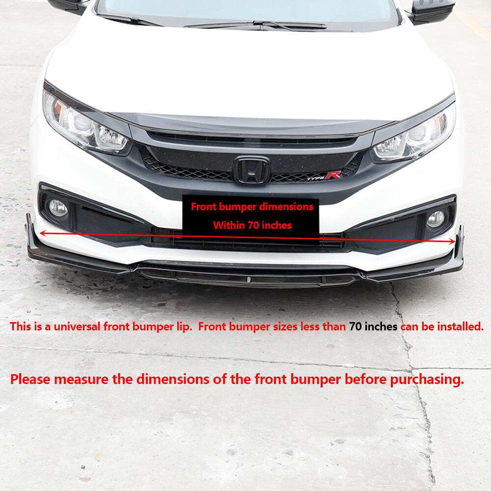 Universal Front Bumper Lip Spoiler Splitter Chin Diffuser Body Kit + Strut Rods Please check that the bottom and sides of the front bumper are flat before buying,avoid installation failure Suitable vehicle type: Fits for car universal: Honda,Toyota,Mazda,Subaru, Volkswagen,Acura,mitsubishi,Cadillac,lexus,Audi,BMW,Mercedes Benz,Ford,VOLVO,Hyundai,Nissan,Infiniti,Buick,Chevrolet,Kia,Dodge (You can contact us if you have any concerns). Feature: Made of Updated durable and sturdy ABS plastic, no deformation in long-term use. Provide an elegant and personalized appearance. Prevent the car from being scraped and improve the level of the decoration of the car. Come with screws, More convenient installation and stable installation. Professional Installation Is Highly Recommended. Specification: Type:Front Bumper Lip Spoiler Splitter Chin Diffuser Body Kit+Strut Rod Material:ABS Color:Black Package Included: 1 x Set Of Front Bumper Lip Spoiler Splitter 1 x Set Of Strut Rod 1 x Bag Of screws Delivery details/Shipping and handing: 1. We will ship your order within 3 working days 2. If you didn't receive the item after 7 days, Please contact us, we'll investigate and solve the delivery problem. If you are satisfied with our service, please leave 5 Stars Rating Thanks! Terms of sales: 1. Please contact us before leaving a Negative feedback if you are not satisfied our service or products. Good communication is helpful for both of us to resolve any problems and issues. We are promising to try our best to provide the best service and 100% satisfaction for valuable buyer like you 2. All of the items are new. If it is not in new conditions, refund is offered. Otherwise, replacement can be offered for defective product. We will exchange or give the seller credit to buyer. 3. Customers are responsible for return shipment fee except for wrong shipment or defective products. About us: If you have any questions, please feel free to email our service specialists 24 Hours a Day, 7 Days a Week, and we will reply you ASAP. If no response within 24 Hours, please check the spam of mail box or kindly re-send it to us. We greatly appreciate your POSITIVE feedback. Please do NOT leave negative feedback without any contact. If you haven't received item in 30 days, please contact us and We will try our best to solve your problem ! We are the professional car decoration dealer, if you would like to make your car a shinny look, please contact us !!!