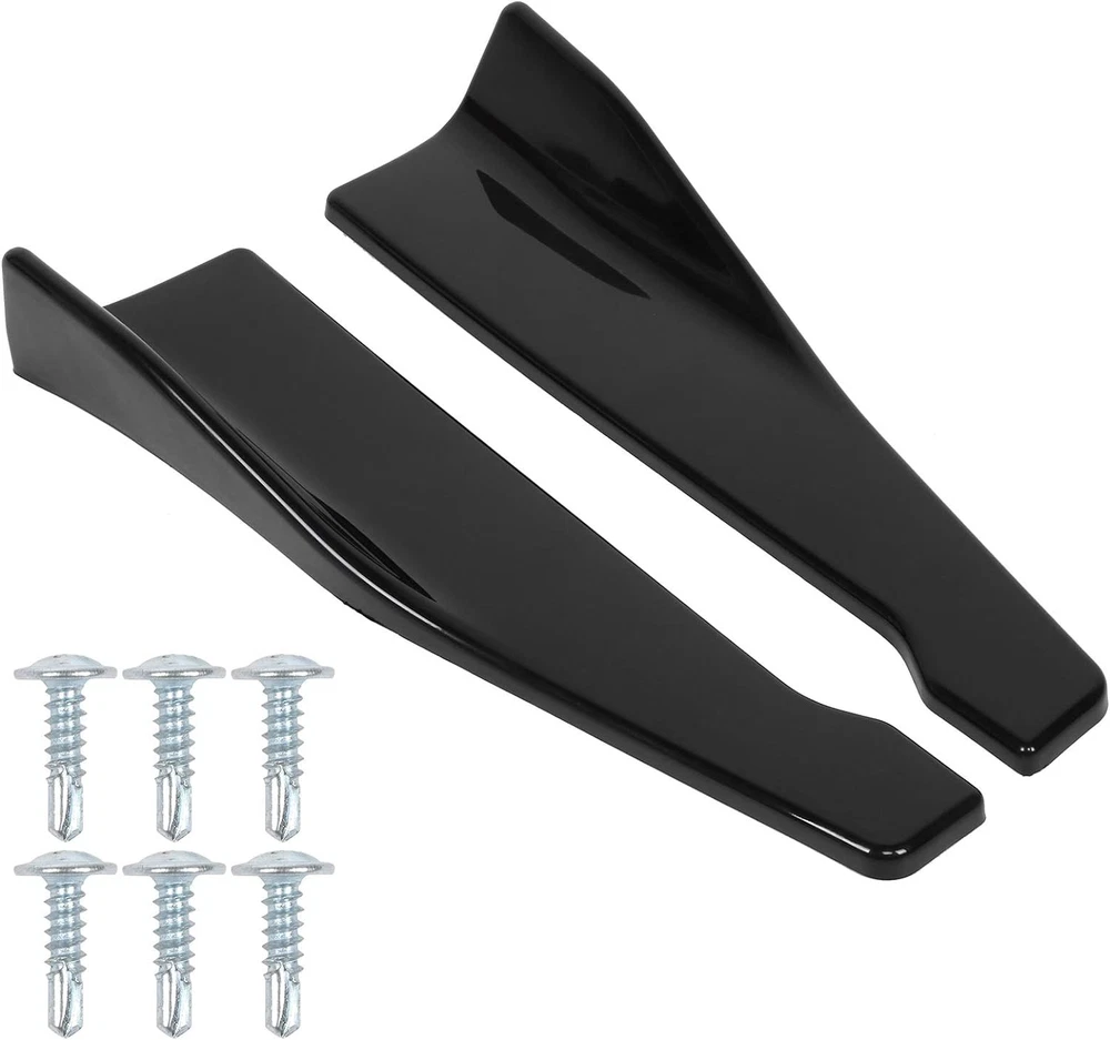 Package Included 1:Front Lip Chin Bumper Specification: Condition: 100% Brand New Type: Front Lip Chin Bumper Body Kits Material: Polyurethane Color: Glossy Black Placement on Vehicle: Front ; Lower Features: Give your vehicles sporty appearance Protect Your Bumper From Scratching Strict quality control standards to Build and test. Come With Screws, for quick installation Professional Installation Is Highly Recommended. Fit for Universal width 75". Require: Product will require drilling holes into the bumper and/or lip/diffuser to attach safely to the vehicle. Package Included 2:Side Skirt ( 2pcs ) Specification: Condition: 100% Brand New and High Quality Type: Car Body Side Skirts Material: Polyurethane Color: Glossy Black Length Size:2.2m(Make Sure 2m Length is the size you want!!!!!!!!!!!!!!!!!!!!!) Position: Side Skirt Extension Features: Universal modified side skirt for car sedan. While the side skirts don't affect the front ground clearance too much, it enhances the side extension of the in a very pure and exciting way. A Perfect Aftermarket Replacement. Professional Installation Is Highly Recommended. Package Included 3:Rear Lip ( 2pcs ) Specification: Condition: 100% Brand New and High Quality Type: Car Body Rear Lip Material: Polyurethane Color: Glossy Black Rear Lip Size:19 in x 4.33 in Placement on Vehicle: Left, Right Package Includes: 4pcs/set Front Lip Chin Bumper Body Kits 2x Side Skirts 2x Rear Lip 2xStrut Rods Screws kit Require: Product will require drilling holes into the bumper and/or lip/diffuser to attach safely to the vehicle. - It's does not fit the car has a curve underneath by the back door.our item is straight.