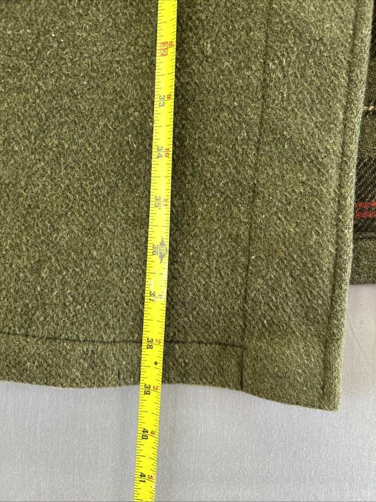 Gloverall “The Original” Duffle Coat – Made in England Classic British heritage outerwear from one of the most respected duffle coat makers in the world. This authentic Gloverall duffle coat features a traditional olive green wool body, wooden toggle closures with leather straps, fixed hood, and signature tartan plaid lining. Made in England. A timeless cold-weather staple with military roots and strong dark academia / heritage styling appeal. 📏 Measurements (Laid Flat) Pit to Pit: 22.5” Length: 39” Shoulder to Shoulder: 18” Sleeve (Pit to Cuff): 14” Estimated Men’s Medium (please compare to a coat you own for best fit). 🧵 Features Heavy wool melton construction Wooden toggle closures Leather toggle straps Two large front patch pockets Fixed hood Plaid tartan lining Made in England 🧼 Condition Pre-owned in good vintage condition. Light general wear consistent with normal use. Toggles and leather straps intact. No major flaws noted. See photos for condition and measurements. Ships next day, excluding Sundays.