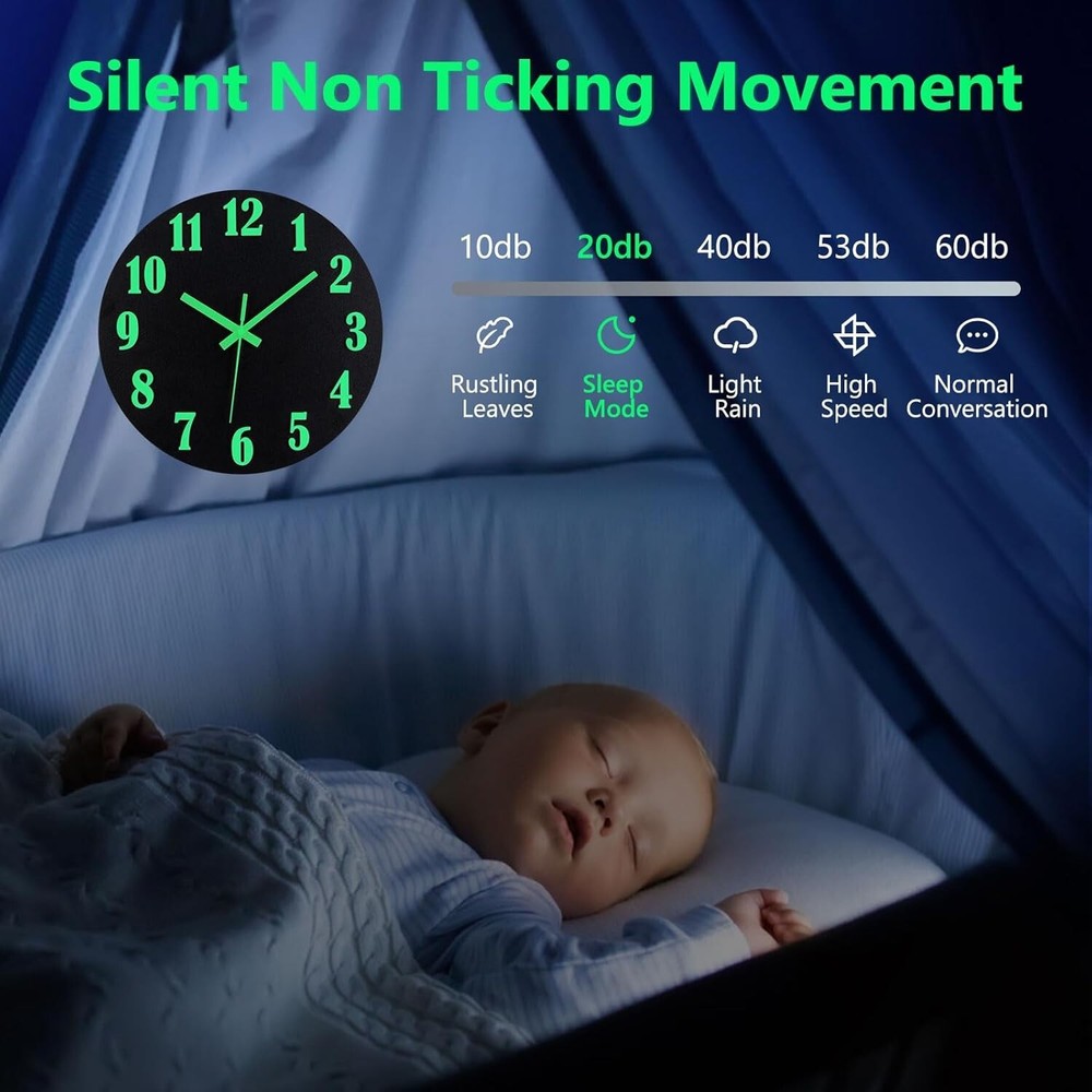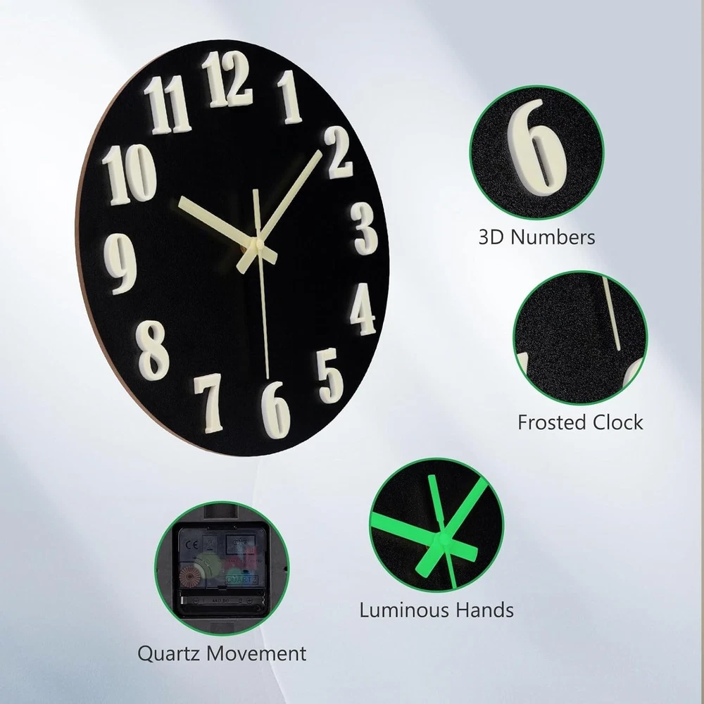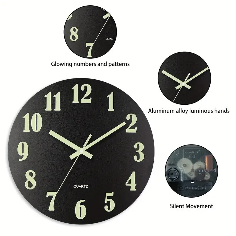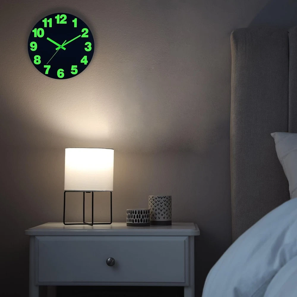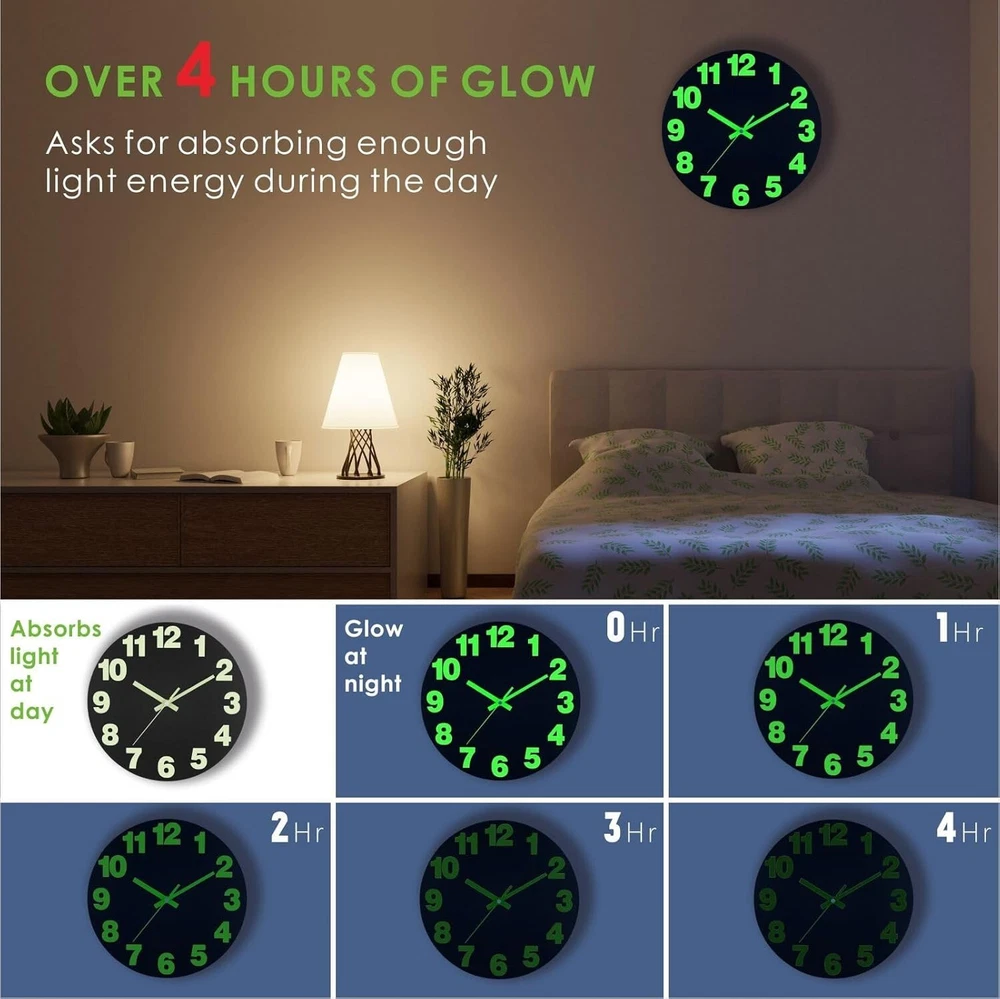 Large Luminous Wall Clock with Glow-in-the-Dark Silent Quartz Movement