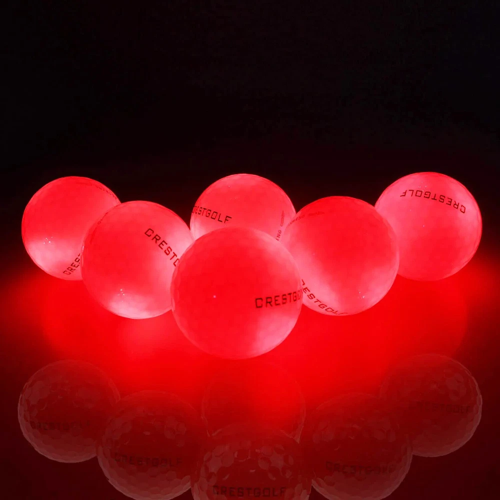 Premium Material Durable Resin, Surlyn, Electronic Chips; 4 Built-in LED lights with 50 hours Battery life; 4 Built-in LED Lights Glowing brighter than ordinary (2 LED lights) balls; About 8 and half minutes glowing time per hitting. 6 Distinguishable Colors 6 Colors led golf ball for your choice; Red, Yellow, Green, Blue, Pink, White. Real Shot