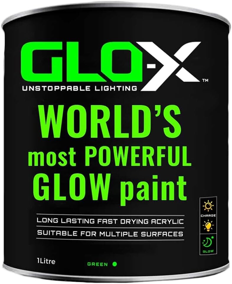 Glow In The Dark Paint 1Litre Can - Clear Paint That Glows Green In The Dark- Powered Light & Sun Activated Glow In The Dark Paint for Metal & Plastic - Glow Acrylic Paint for Outdoors - Fishing Lure Paint Bright in the dark: Long-lasting & fast-drying, glows in the dark for 12+ hours prior to needing a recharge! outdoor acrylic paint is charged by solar power or under a light source. Safety first: If you regularly ride a bicycle, motorbike, or skateboard at night, make your experience a whole lot safer with outdoor glow in the dark paint for plastic and metal surfaces! What Glow Paint is: Acrylic paint, can safely be used on many different surfaces. Start out with a white acrylic base coat. This will help to ensure your items really POP when it's dark! Glows for 12+ hours: To charge, simply leave your painted items under powered light or in natural light throughout the day. When charged and when it's dark, your items will glow for over 12 hours. Un recharge: The glow outdoor paint never wears off and you can enjoy an un number of recharges. What’s even better is that there's never any need for any rechargeable batteries.