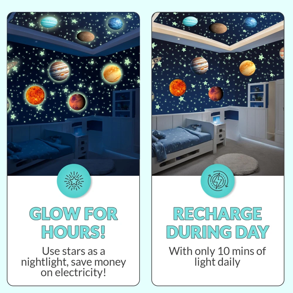 black lights for glow party large space ceiling decor room decor space stickers star lights for ceiling wall stickers big star ceiling decor for bedroom ceiling decorations ceiling hanging decor ceiling stars ceiling stars glow in the dark ceiling wallpaper fantastic planet galaxy decor galaxy room decor galaxy stickers galaxy wallpaper gifts for who love space glow baby glow decorations glow in dark glow in dark stars glow in dark stars for ceiling glow in the dark ceiling stars glow in the dark decor glow in the dark decorations glow in the dark lights glow in the dark paper glow in the dark planets glow in the dark planets for ceiling glow in the dark room decor glow in the dark star stickers glow in the dark stars stickers glow in the dark stickers for ceiling glow in the dark stickers for glow in the dark toys glow in the dark wall decals glow in the dark wall stickers glow stars room glow toys glowing stars for room ceiling green planet kid room decor bedroom decor room room wallpaper wall decals wall decor wall stickers light up wall decor little big planet moon and stars decor moon and stars nursery decor moon decor moon stickers moon wall decor outer space outer space room decor outer space toys planet decorations planet stickers planet toys planet toys for 3-5 planets decor planets for planets for solar system toys 3-5 planets toys for 5-8 science projects for ages 4-8 sistema solar solar system for solar system kit solar system poster solar system puzzle solar system toys solar system toys for 3-5 solar system toys for 5-7 space decor space decor for boys room space gifts space gifts for 8-12 space nursery decor space room decor space room decor for boys space stickers for space stuff space themed bedroom decor space toy space toys for 3-5 space toys for 5-7 space toys for 8-10 space wall decal space wall decor space wallpaper [ Package Includes ] Transform your ’s room with 534 mesmerizing glow-in-the-dark stars for the ceiling. This celestial set includes 525 glowing stars and dots, a radiant Sun, and 8 vibrant planets. Bedtime becomes an enchanting journey through the solar system! Plus, enjoy an included Constellation E-book. [Will Love Bedtime] Transport your to space with our Solar System Glow in the Dark Stickers! Watch as planets and stars illuminate their ceiling, creating a mesmerizing bedtime experience. [Spend Less on Electricity] Transform your ’s room into a celestial sanctuary with our glow-in-the-dark stars and planets. They just require at least 10 minutes of light each day energizes them to radiate a soft, soothing glow all night, guiding your little astronaut to a serene slumber under a galaxy of their own. No more need for nightlights—just a sky full of twinkling constellations, right in their bedroom. [Won't Damage Walls] Create a cosmic wonderland in your ’s room with our premium glow-in-the-dark star stickers. These self-adhesive decals are easy to apply—no putty or tape needed! Just peel them off the sheet and stick them firmly to a flat ceiling or wall. Worried about wall damage? Don’t be! Our stickers adhere securely yet peel off easily, keeping your walls pristine. Transform your ’s space into a mesmerizing galaxy with these stunning stars! [Perfect Gift] Ignite your 's curiosity about space with our celestial decor. These glow in the dark ceiling stickers are ideal for creating a captivating solar system model, making them the ultimate gift for any young stargazer or space enthusiast.