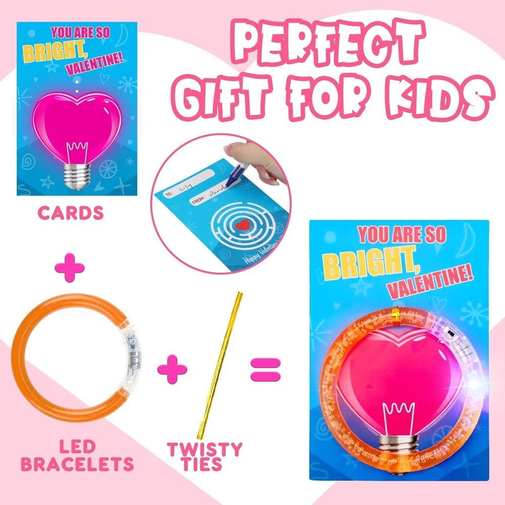 Thremhoo 26PCS Glow in the Dark LED Bracelets Valentine Day Cards for Kids School Classroom Funny Light Up Valentines Exchange Gifts for Toddler Boys Girls Valentine’s Party Treat Stuffers Fidget Bulk Product Details Color: Colorful Material: Plastic Brand: Thremhoo Theme: Love Item dimensions L x W x H: 1 x 1 x 1 inches Occasion: Valentine's Day Manufacturer: Thremhoo Age Range (Description): Kid Product Dimensions: 1 x 1 x 1 inches Item Weight: 1.23 pounds Country of Origin: China Manufacturer recommended age: 3 years and up Perfect Valentines Gifts for Kids ClassroomOur Valentines day gifts for kids includes 24pcs LED light up glow in the dark bracelets, 24pcs valentine cards and twisty ties. Flashing LED lights create a fun atmosphere for kids valentine party. Pick suitable colors for different friends. Great Valentines day exchange cards for kids classroom! Amazing Light Up Grow BraceletsOur glow in the dark party favors LED bracelets have different colors which are delivered randomly. The light-up part is super-cool with 3 button batteries. Light up in the dark ,enjoy the glow party glow time with flashing of the glow bracelet. Best class Valentines day gifts for kids that bringing more fun on Valentine's Day! High Quality Glowing Valentine ToysThe LED party bracelets made of high quality PVC Material, non toxic, non-flammable, non- radioactive. Great valentines day party suppliers, valentines day goody bags stuffers, valentines day gifts cards for kids classroom. More fun & less pressure! Great candy alternative for toddler boys girls in Valentines,valentine exchange greeting cards for school class classroom, valentines treats. High Quality Glowing Valentine ToysThe LED party bracelets made of high quality PVC Material, non toxic, non-flammable, non- radioactive. Great valentines day party suppliers, valentines day goody bags stuffers, valentines day gifts cards for kids classroom. More fun & less pressure! Great candy alternative for toddler boys girls in Valentines. Perfect Valentines Day Glow Party GiftExchange fun light up bracelets can be a hit on Valentines Day for both boys and girls. Sparkling lights, full of atmosphere, suitable for kids party favors, valentines exchange cards, classroom prizes, school party supplies gifts, valentines treat bags, valentines boxes for kids, party favors for kids 3-5 4-8, goodie bags for birthday party, Glow in the dark LED bracelets.