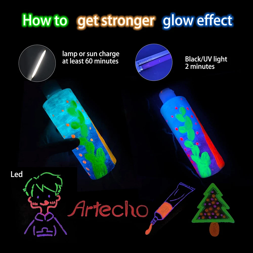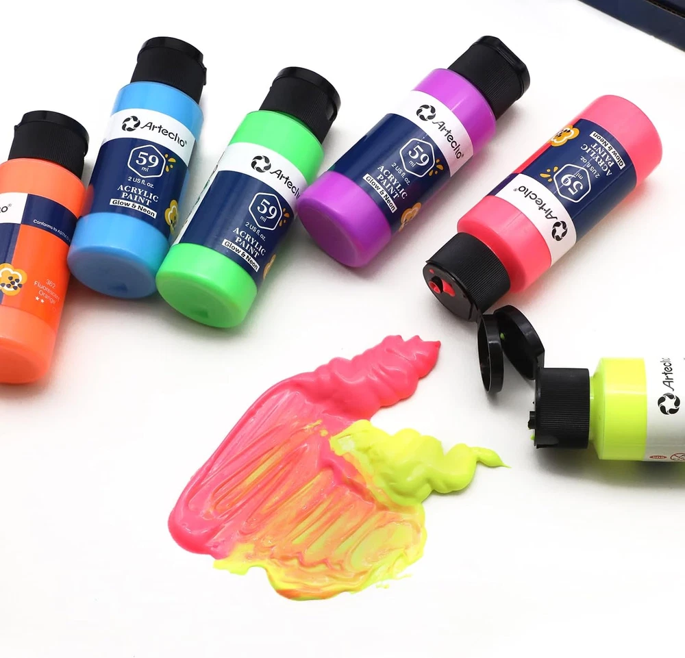Store New Arrivals Add to Favorite View Feedback Contact Fast deliveries to the customer's home Quality customer service John Make the customers happy! Glow in the Dark Paint, 6 Colors (59 Ml / 2 Oz) Acrylic Paint for Decoration, Art Painting, Outdoor and Indoor Art Craft, Art Supplies for Canvas, Rock, Wood Description Vibrant Colors: The Artecho acrylic glow paint set comes with 6 neon and glow-in-the-dark colors, each in a 2 ounce / 59ml bottle with a convenient flip top High-Quality and Long-Lasting: Our glow & neon paint set features high-quality pigments that create a glossy finish and provide light fastness. The paint glows in the dark and fluoresces under daylight, providing a beautiful luminous effect Fast Charging and Great Luminosity: This glow & neon paint set shows great luminous effects under black light and quickly charges in the sun or lamp. For better results, we recommend using black light or LED light Suitable for Various Surfaces: Our acrylic paints are versatile and suitable for most painting surfaces including canvas, paper, wood, leather, cardboard, and crafts. For smooth surfaces, we recommend painting two or more layers or a pure color undercoat to achieve the desired fluorescent effect Perfect Gift: This paint set is a great gift for painting enthusiasts, beginners, and professionals alike. It's perfect for Christmas decorations, outdoor and indoor decorations, and makes an ideal gift for birthdays, Christmas, Thanksgiving, and more Product Description 1 MINIATURE PAINTING 2 PLASTIC BOTTLE 3 WOOD ART 4 GLASS PAINTING 5 FABRIC PAINTING Directly apply Advise that people with sensitive skin should not apply paint directly Pour out Pouring this paint out to increases the thickness of adhesion for better glow effect Artecho acrylic paint set Add to Cart Add to Cart Add to Cart Add to Cart Customer Reviews 4.7 out of 5 stars 5,172 4.7 out of 5 stars 7,160 4.7 out of 5 stars 5,172 4.5 out of 5 stars 548 4.6 out of 5 stars 175 Price $6.99 $ 6 . 99 $28.99 $ 28 . 99 $21.99 $ 21 . 99 $17.99 $ 17 . 99 — Colors 26 18,24,48 8,12 / 24 Volume 120ml/4.05oz 2oz 2oz, 4.05oz 32oz, 64oz 25.34oz Type primary primary metallic / primary Non-toxic ✔ ✔ ✔ ✔ ✔ Acid-free ✔ ✔ ✔ ✔ ✔ Age Range Description Adult Style Glow&Neon-6 colors Item Form Liquid Item Volume 2 Fluid Ounces Unit Count 12 Fluid Ounces Is Waterproof True Finish Type Gloss Indoor Outdoor Usage Outdoor, Indoor Container Type Bottle Color Glow&Neon-6 colors Surface Recommendation Canvas,Paper,Wood Special Features Glow Special Feature Glow Specific Uses For Product Exterior Paint Type Acrylic Size 12 Fl Oz (Pack of 1) ABOUT US We offer the best prices around on high quality products. Our E-store includes media such as books, movies, music and games while offering electronics, toys, sporting apparel, clothing, tools, general home, garden items and more. SHIPPING We are always working hard to ensure your package arrives as soon as possible. Please understand that some factors like weather, high postal traffic, and the performance of shipping companies are outside of our control. We offer free shipping to the lower 48 states and ship within 2 business days of payment, usually sooner. We do not accept P.O. Boxes. Please provide a physical address. For shipping outside of the continental USA, we only use eBay's Global Shipping Program. The item is shipped to KY and then sent to the rest of the world. International customers are responsible for all duties and taxes. Continue to 'check out' to calculate costs for shipping the item to your country. Messages regarding eBay's Global Shipping Program MUST be directed at eBay EXCLUSIVELY. RETURNS We offer a 30-Day Return Policy on items in which you are not completely satisfied with. You have the option of a full-refund or an exchange of the item. No returns are available on items shipped outside of the USA PAYMENT We accept PayPal. CONTACT US This page content is yet to come Please ad us to your favorite seller and visit again later Thank You CUSTOMER SATISFACTION We try our very best to make sure every customer is completely satisfied. If there's a problem, message us! We're happy to help. WE ACCEPT